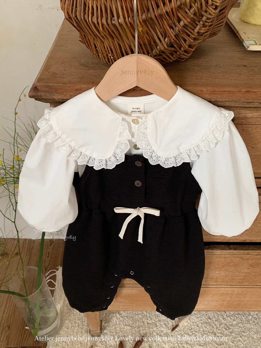 JE586|(73-100cm) 花邊翻領襯衫/細肩連身褲