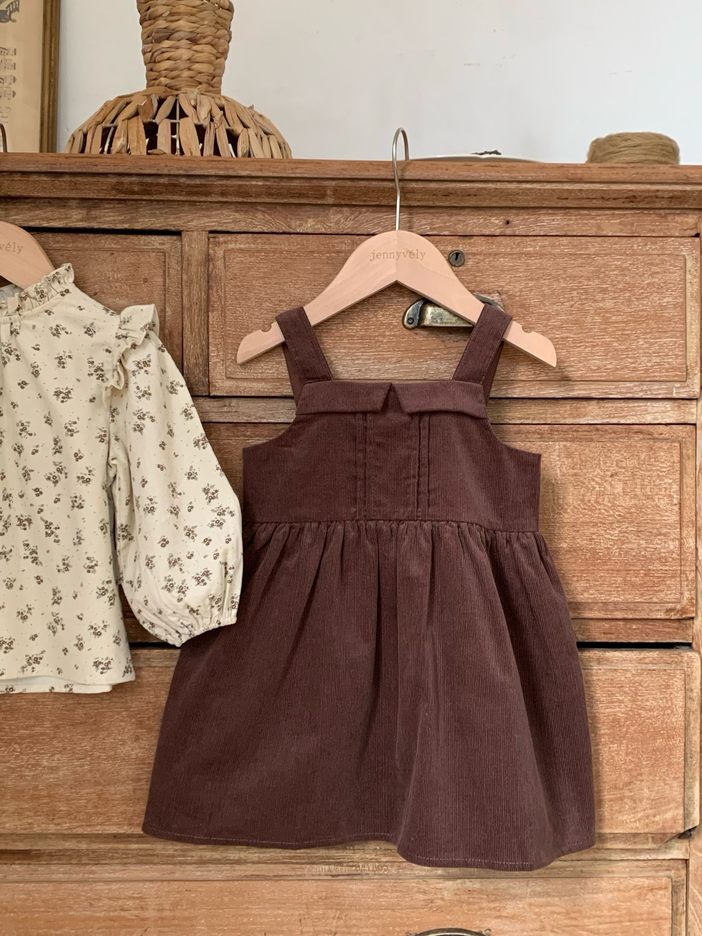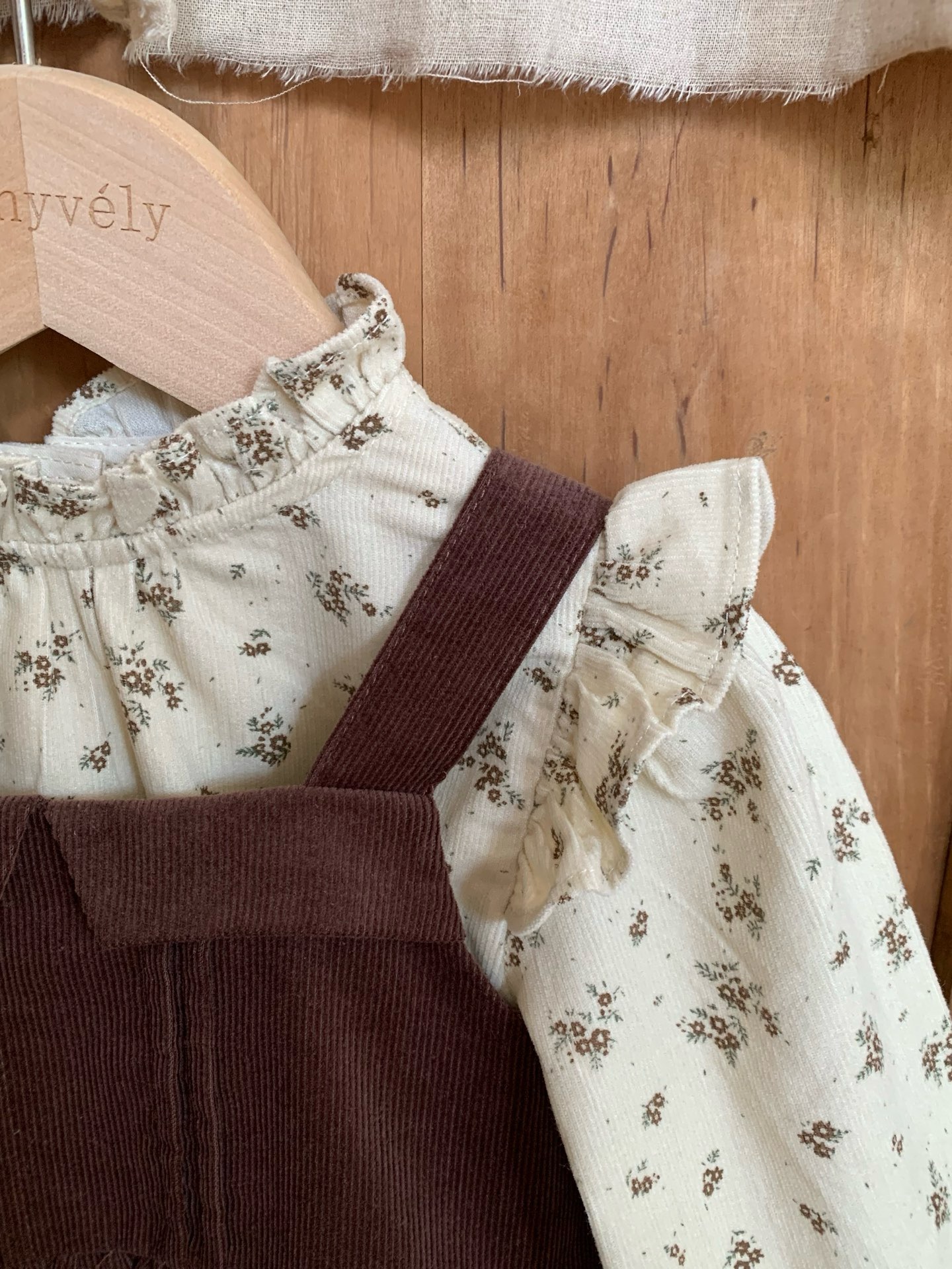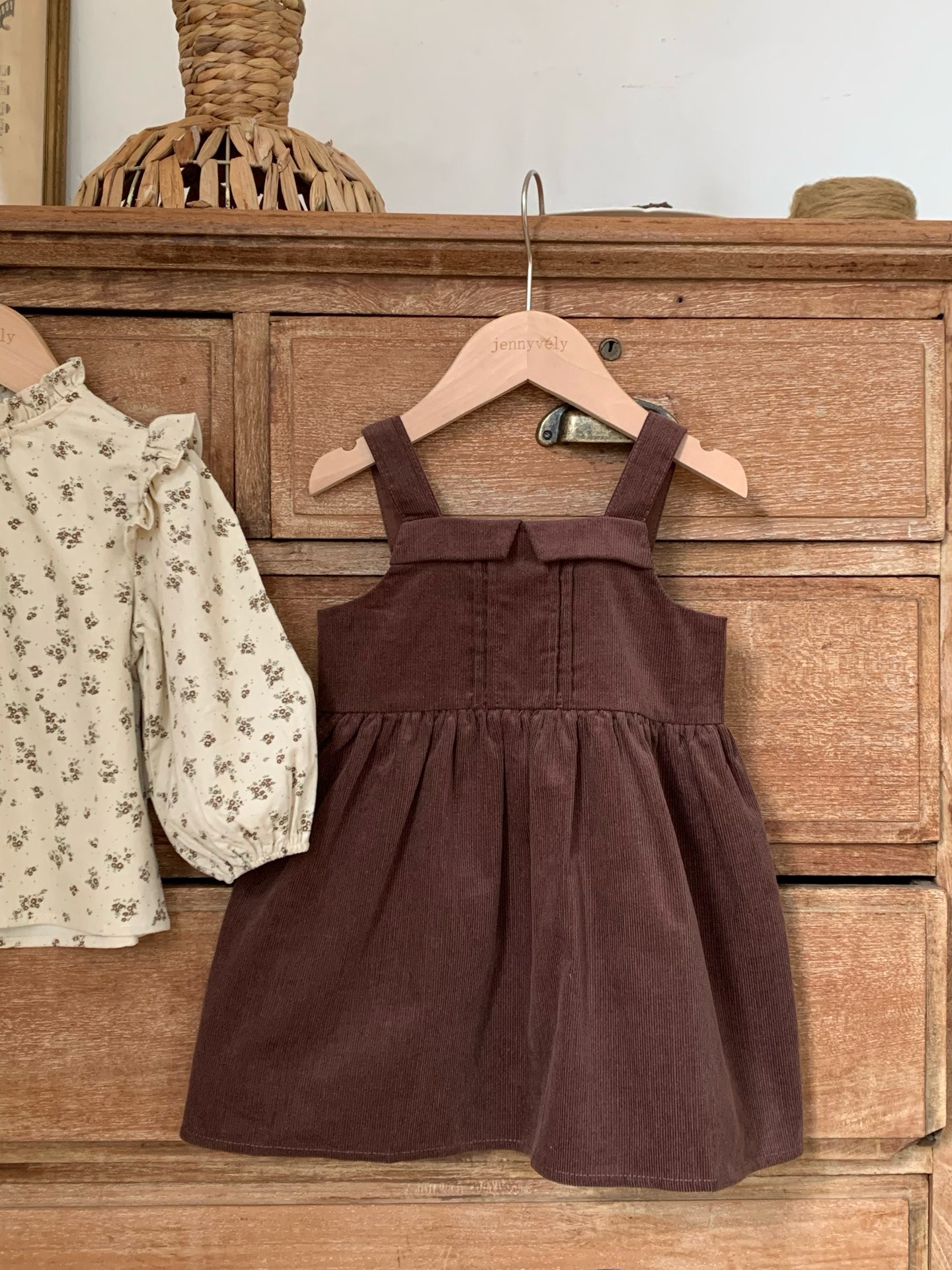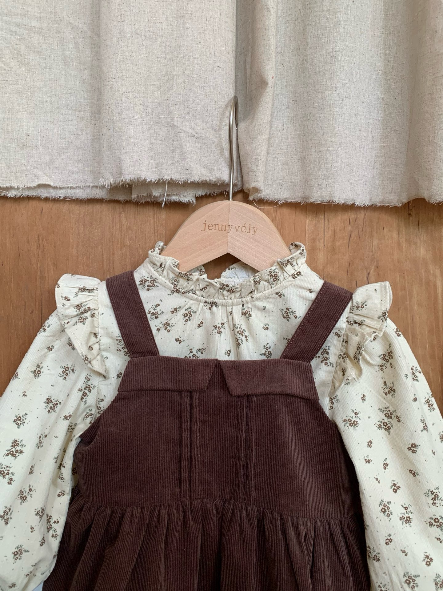 JE589|(73cm-120cm) 燈芯絨背心洋裝/碎花荷葉上衣