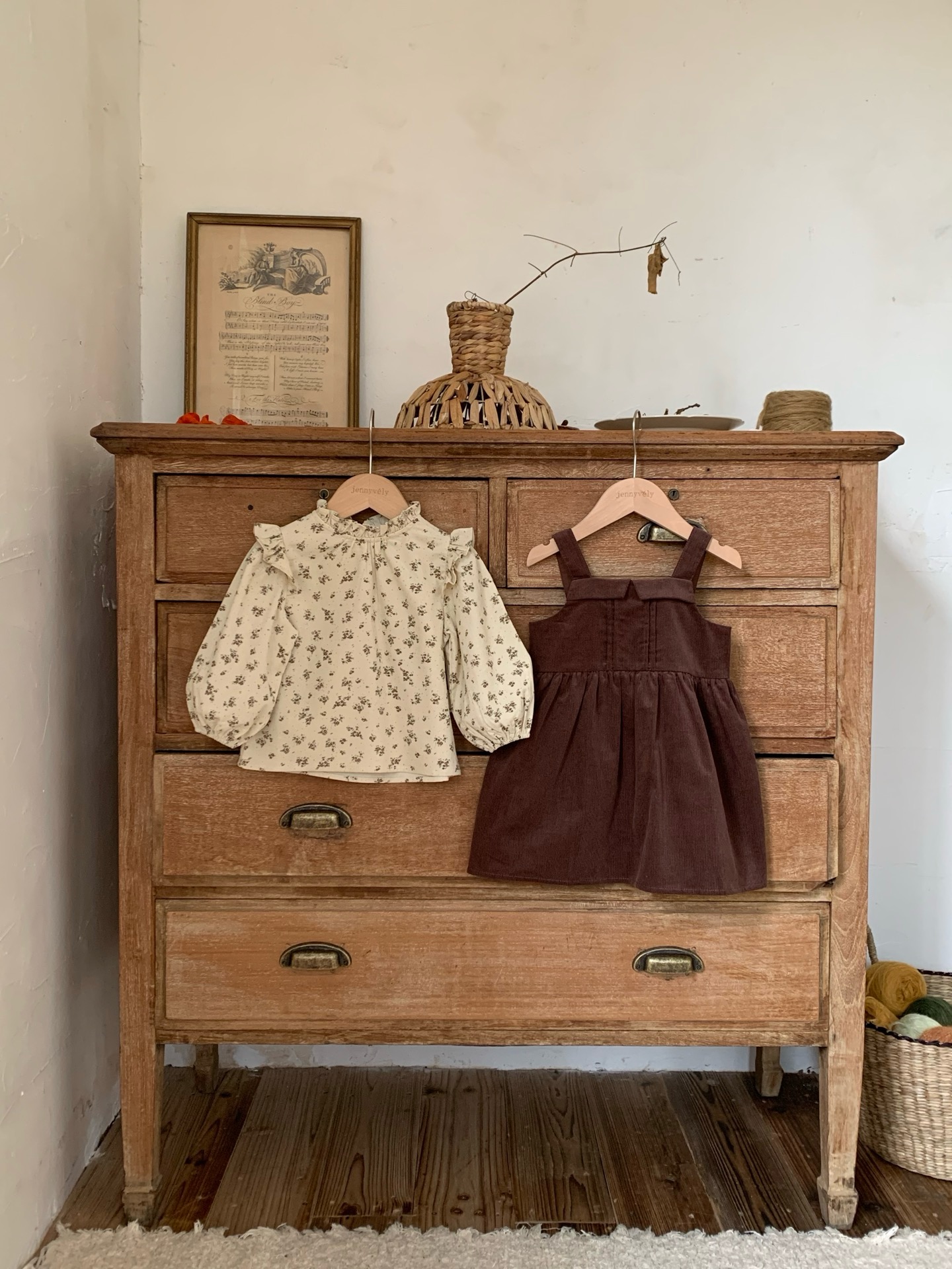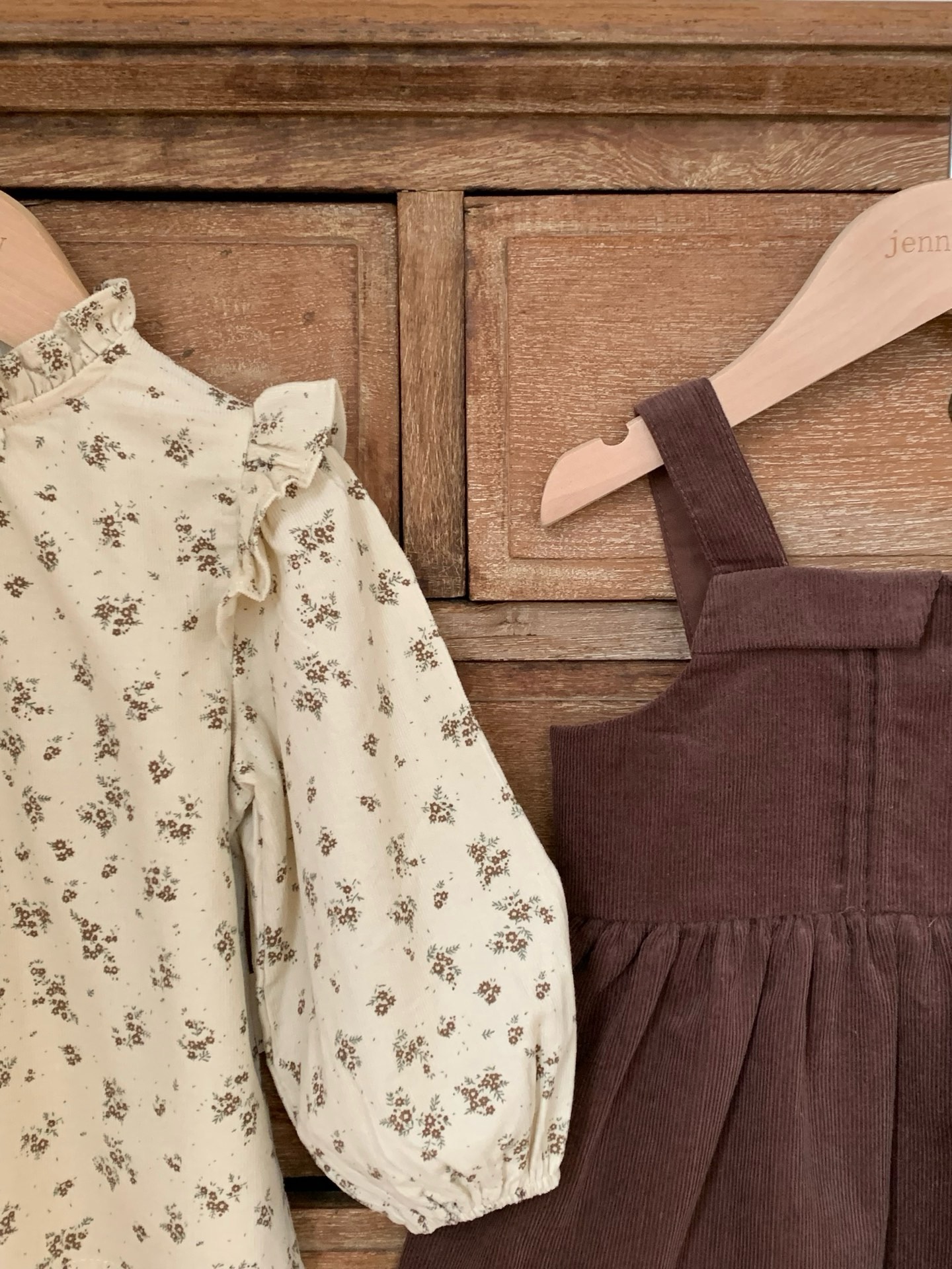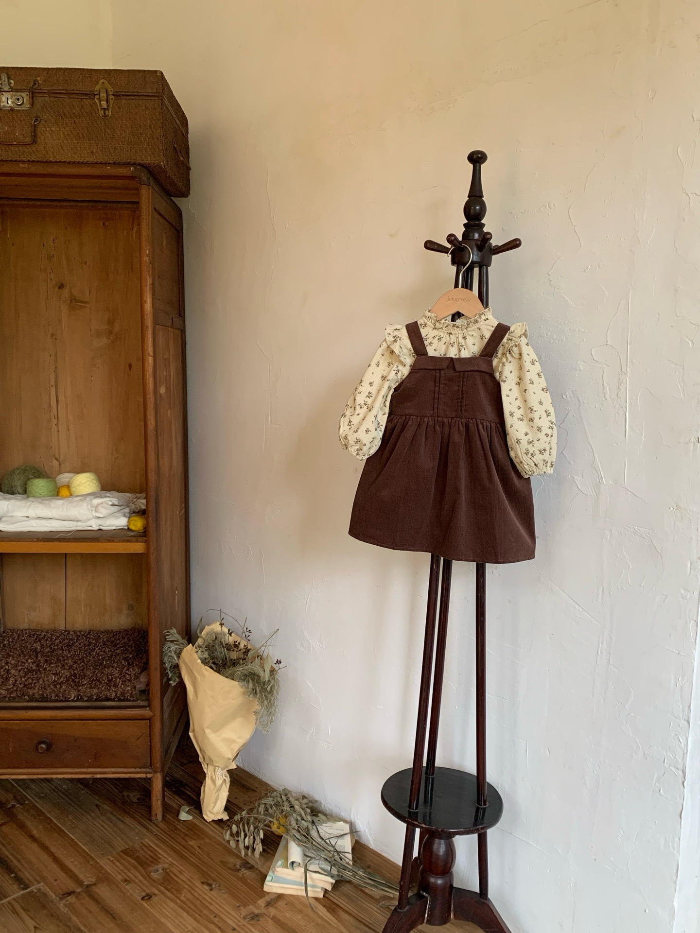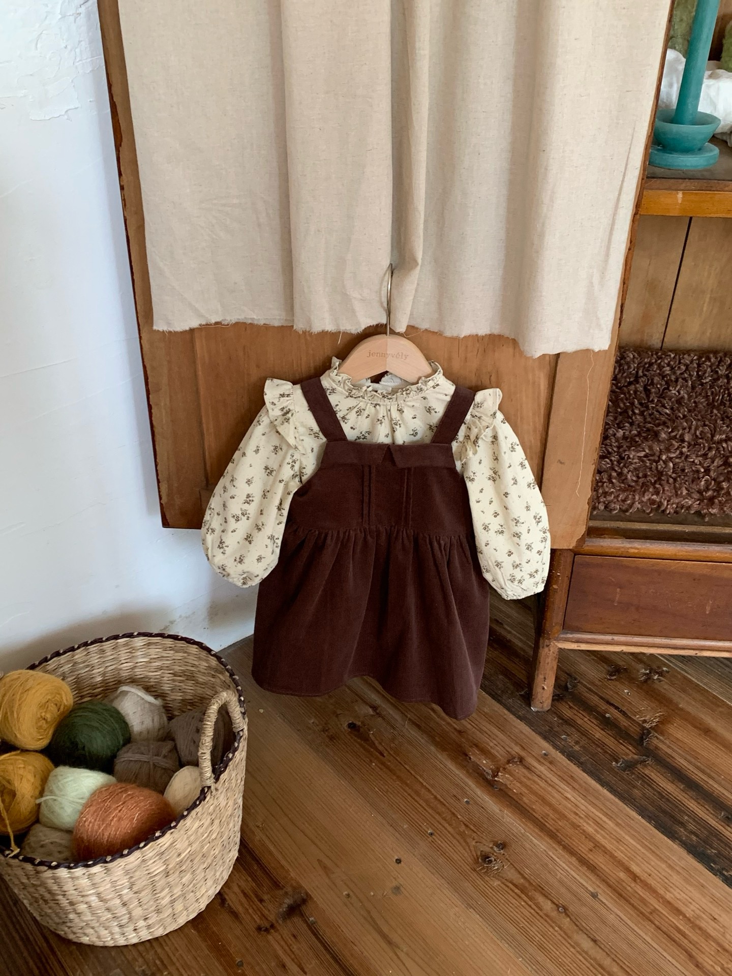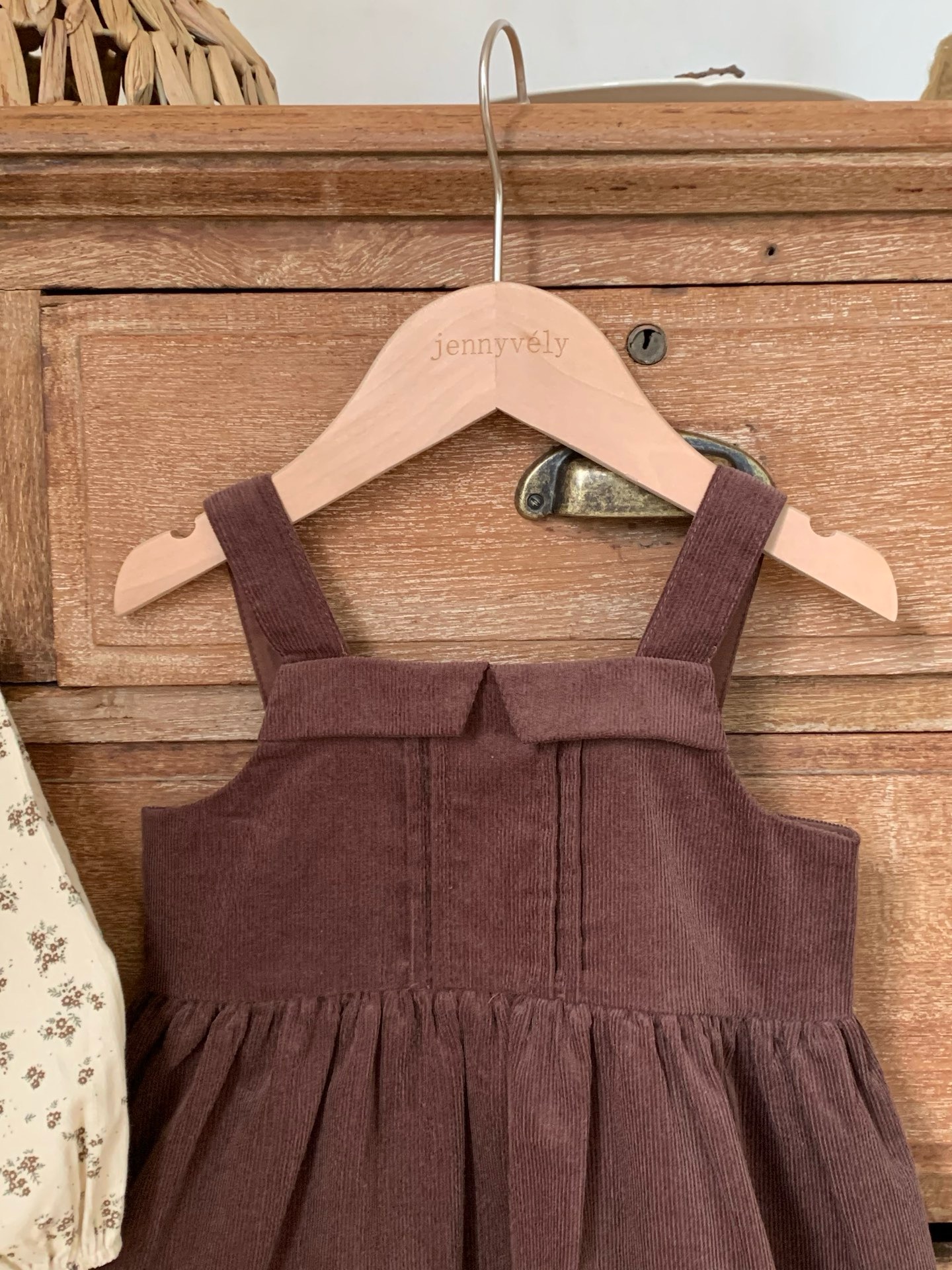 JE589|(73cm-120cm) 燈芯絨背心洋裝/碎花荷葉上衣