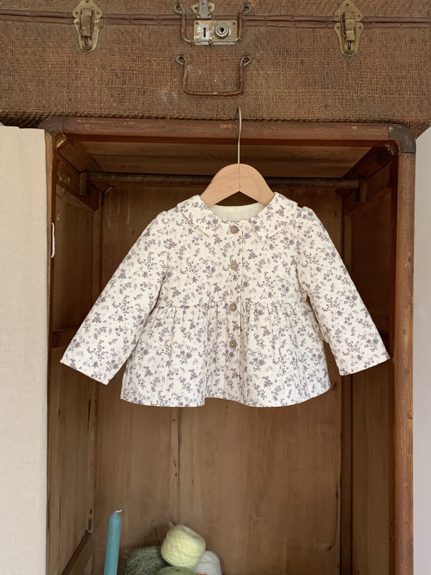 JE604|(66cm-100cm) 紫碎花鋪棉包屁衣/傘狀外套