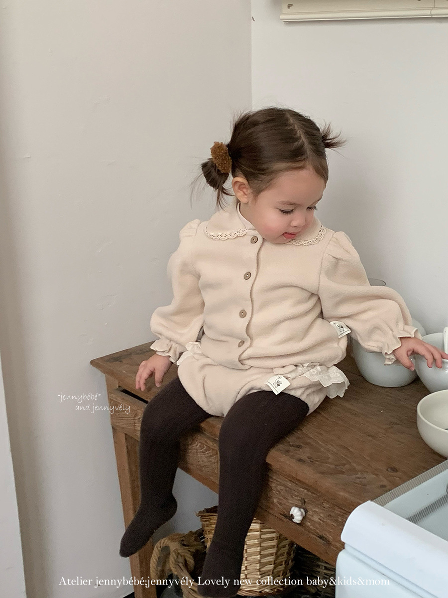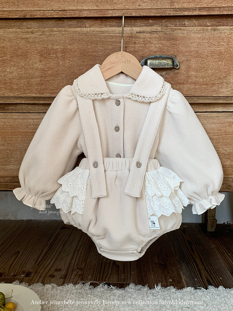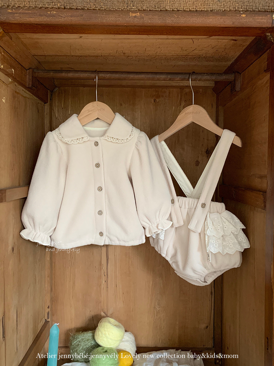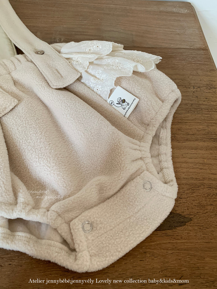 JE 606|(73-100cm) 絨毛翻領吊帶褲套裝
