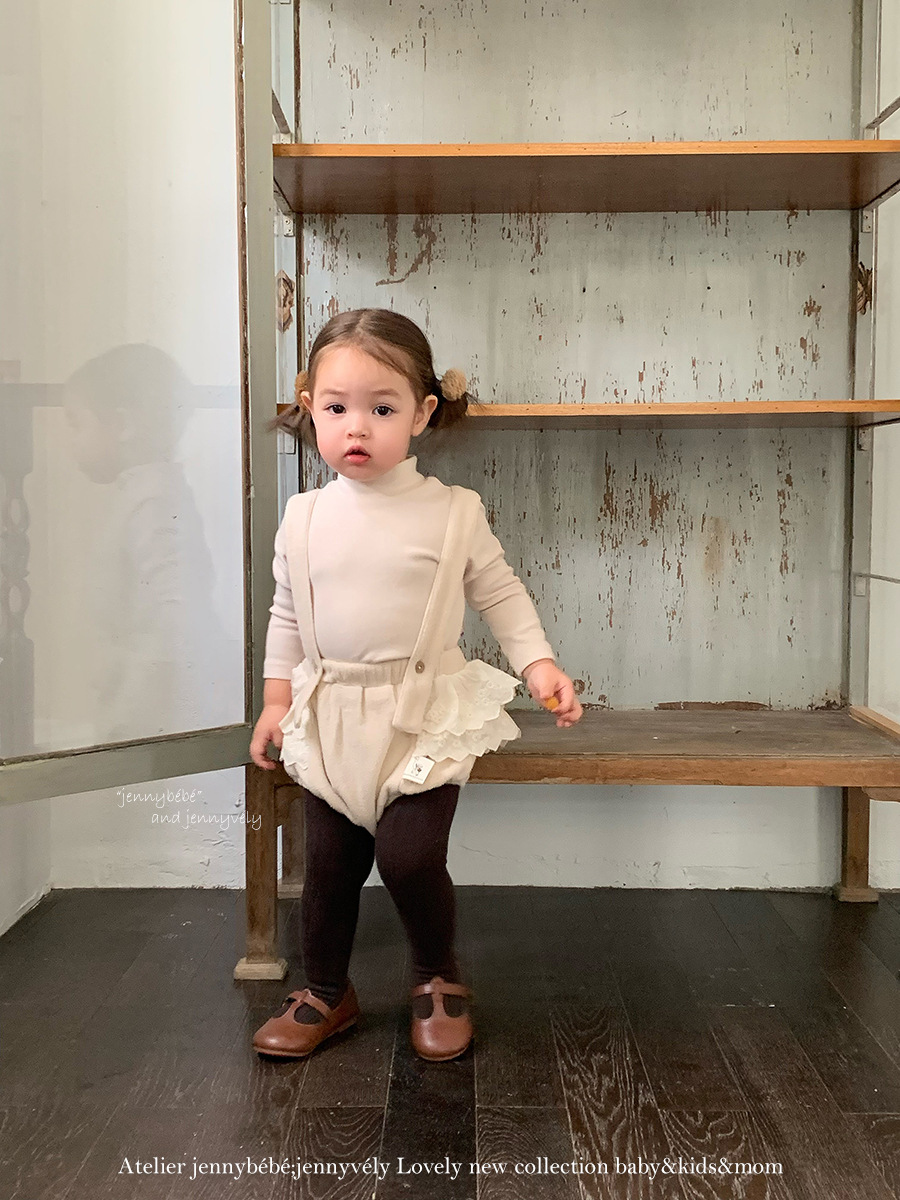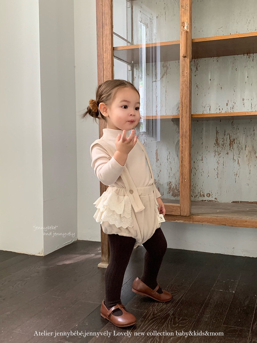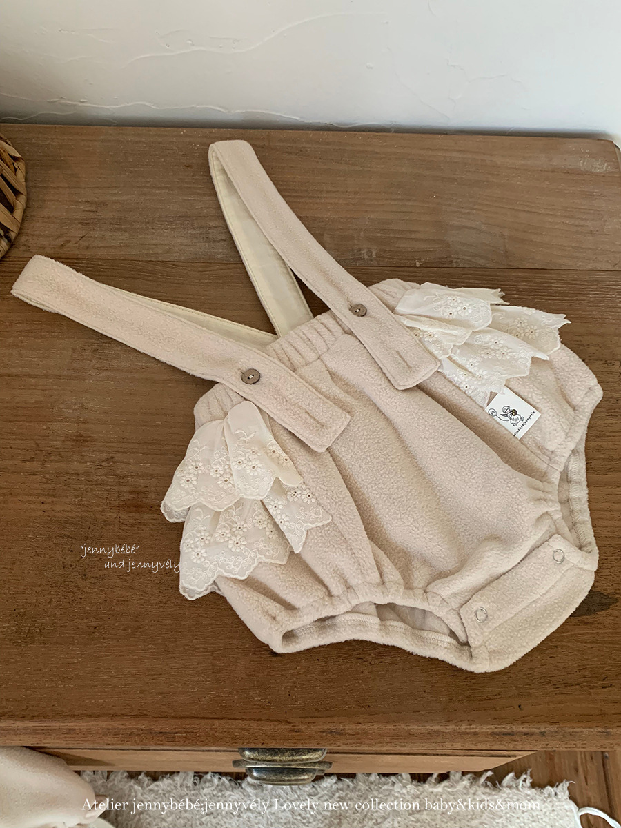 JE586|(73-100cm) 花邊翻領襯衫/細肩連身褲