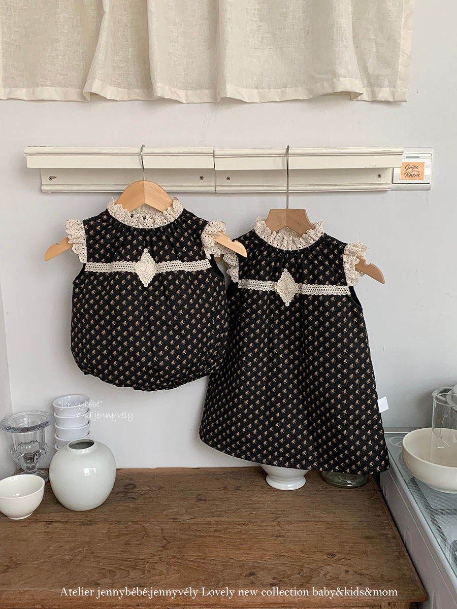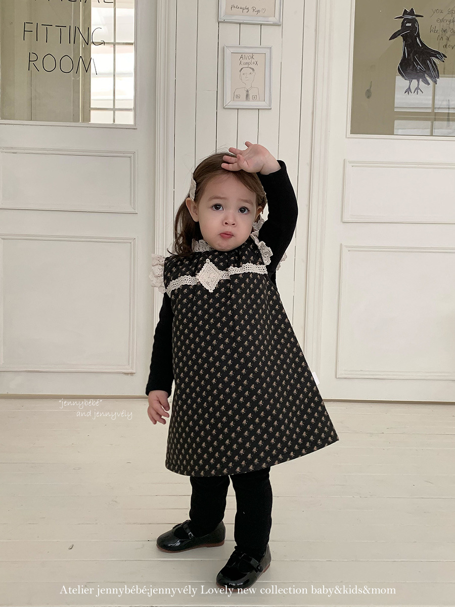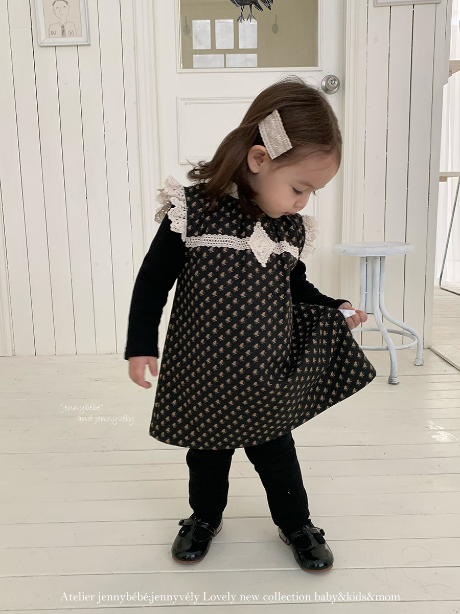 JE 647|(80-110cm) 碎花蕾絲拼接洋裝