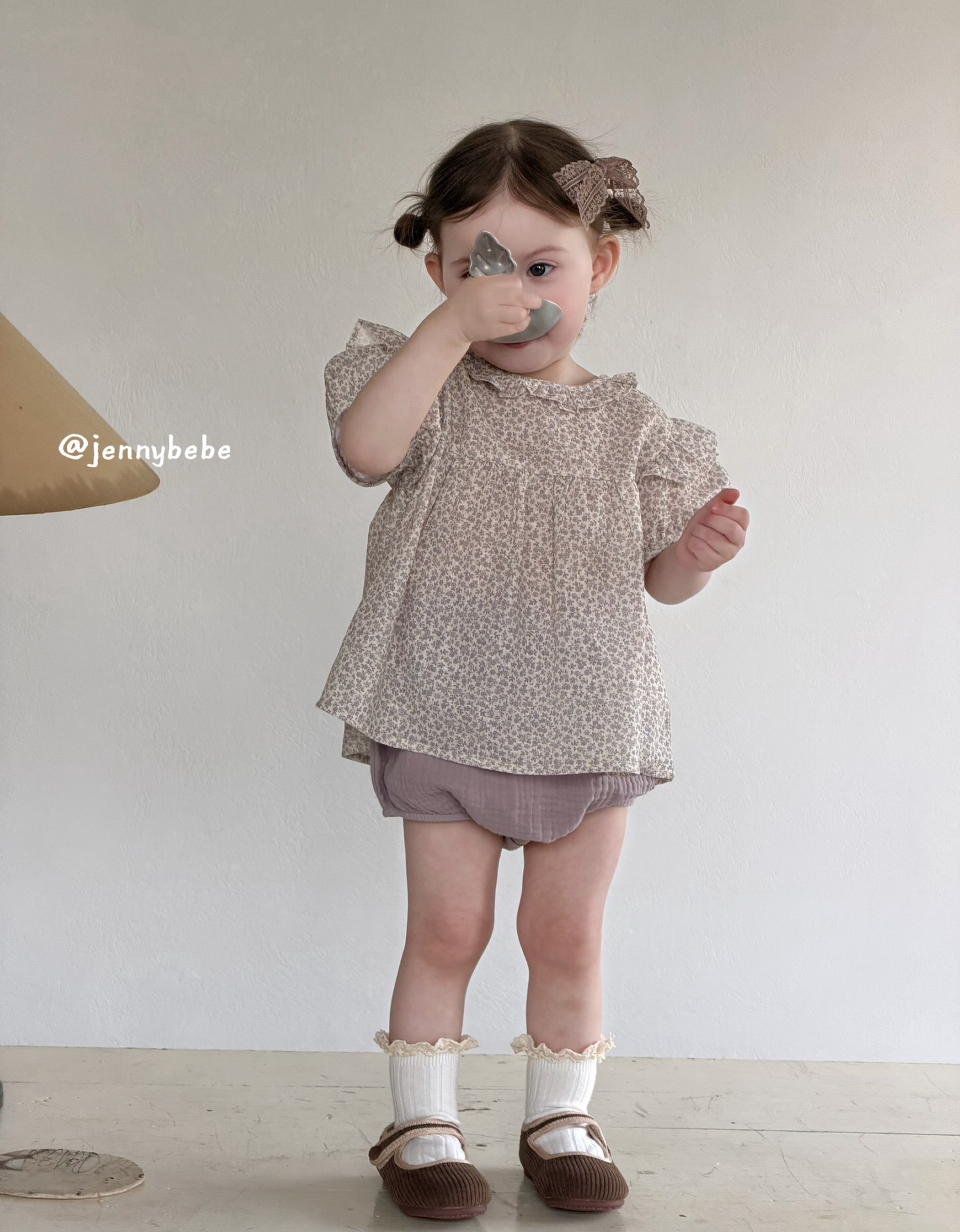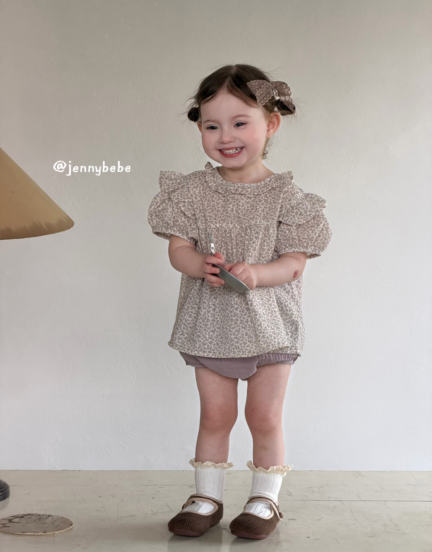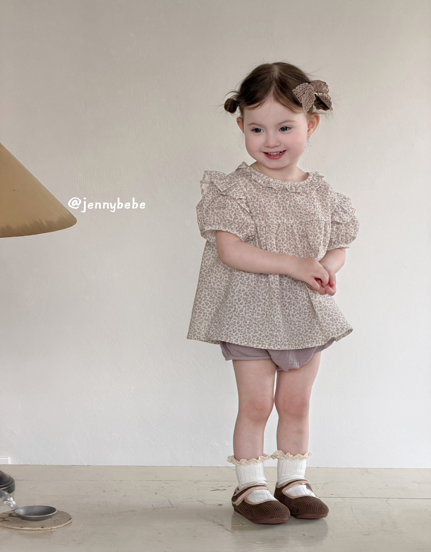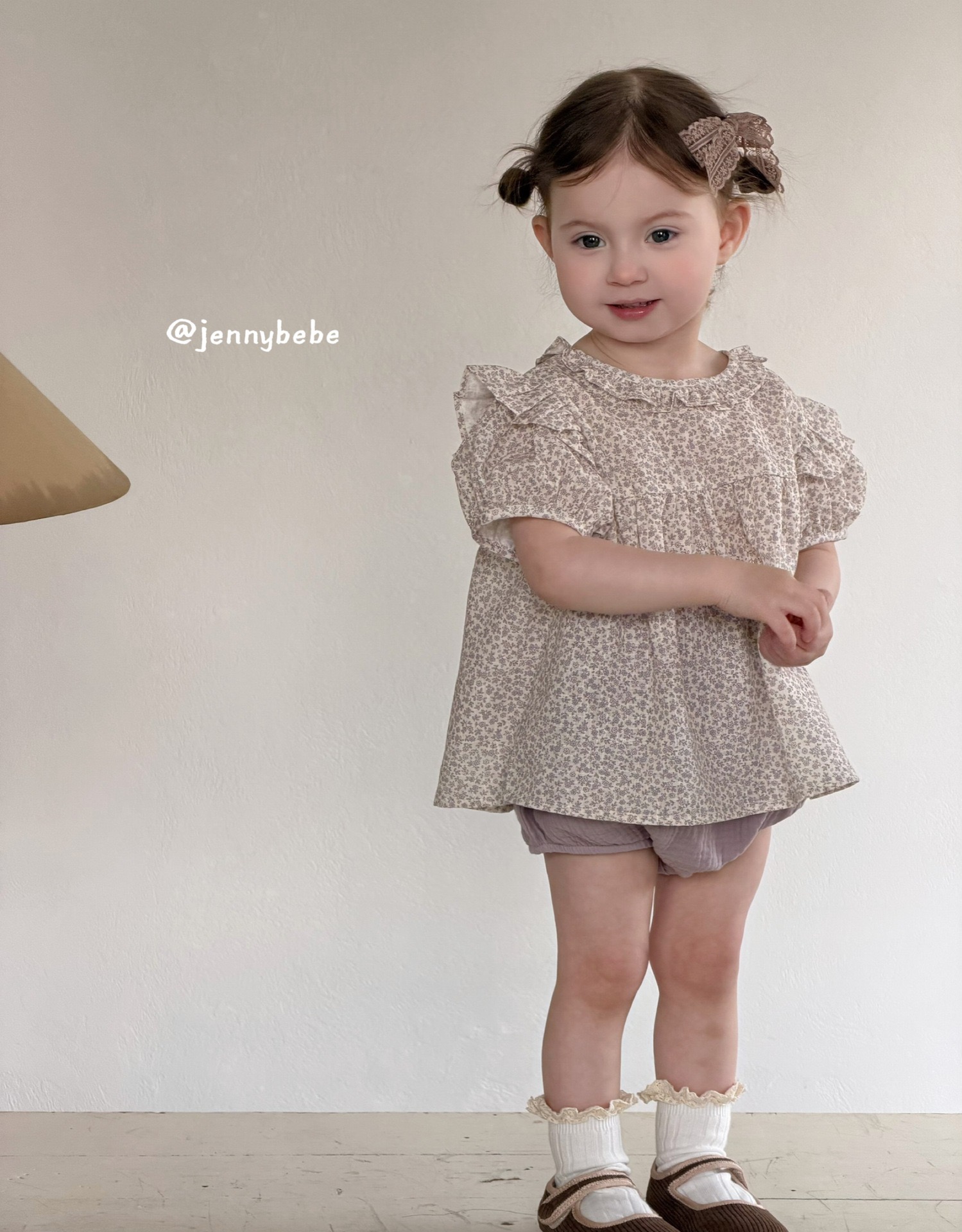 JE681|(80-110cm) 泡泡袖花邊緞帶套裝