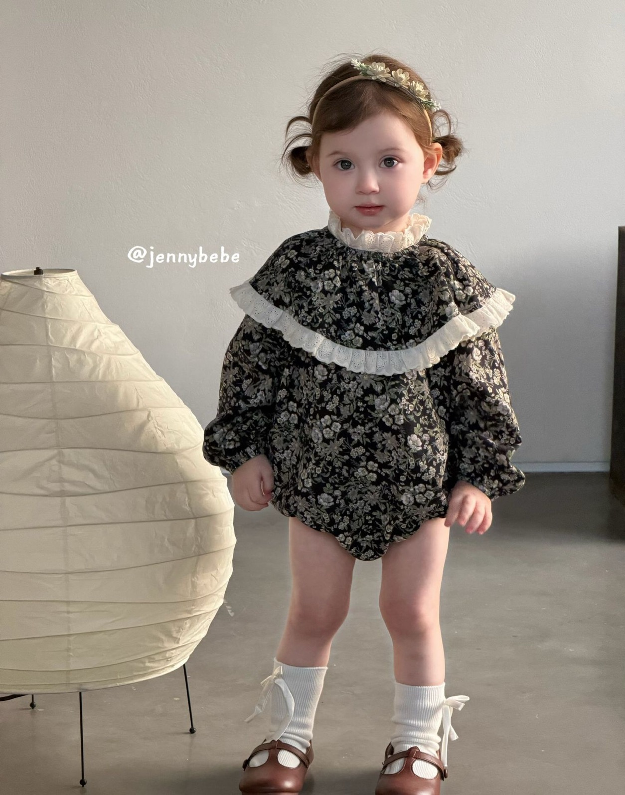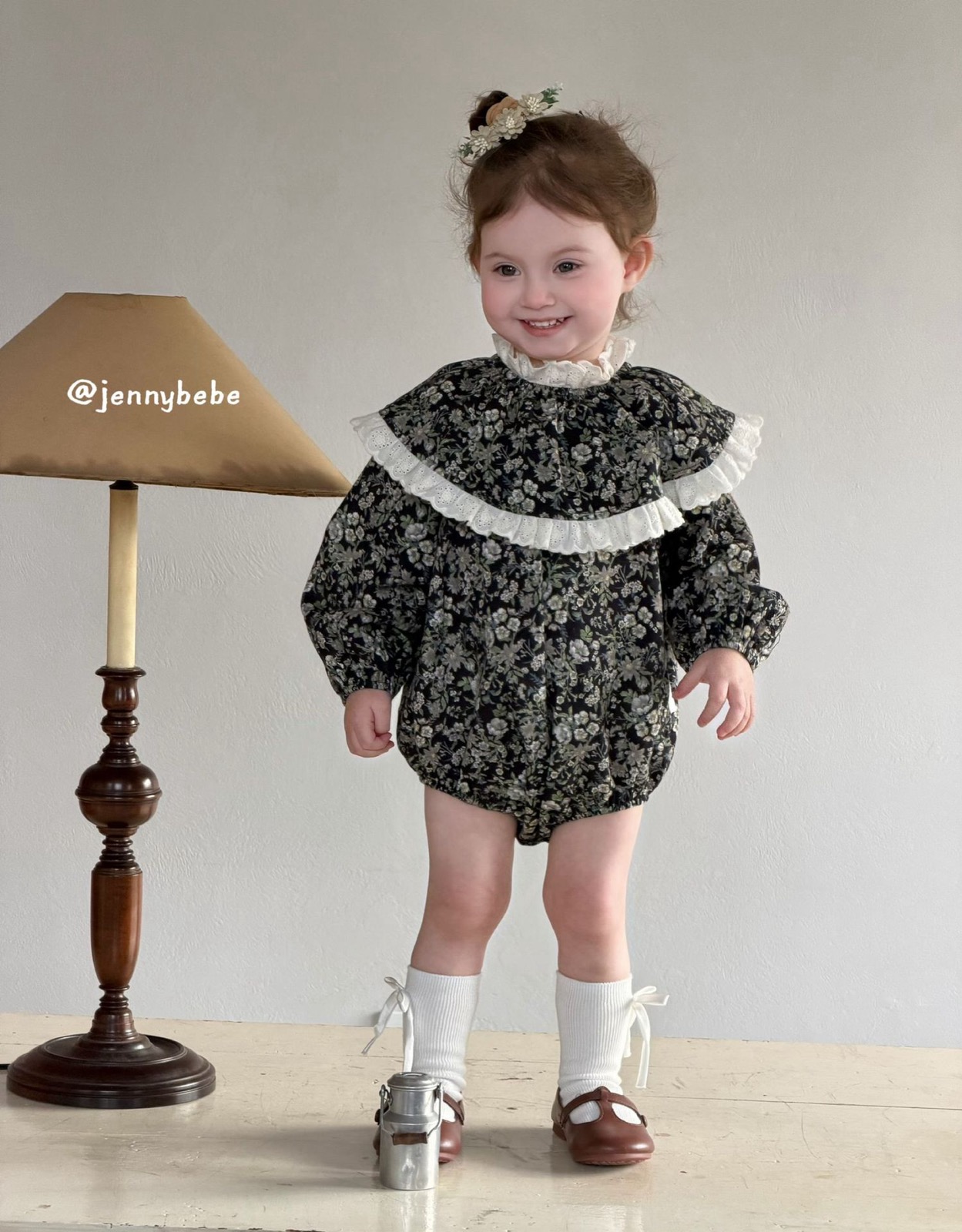 JE712|(66-90cm) 復古碎花蕾絲花邊套裝