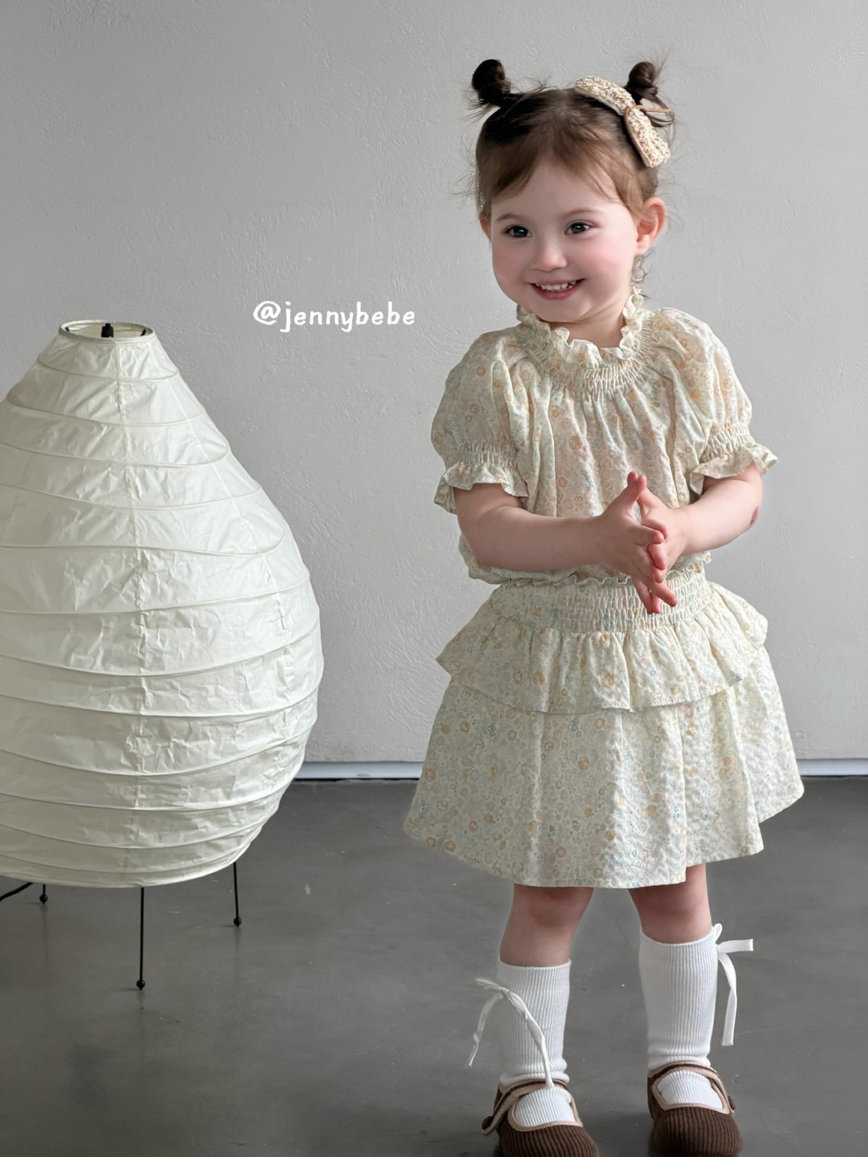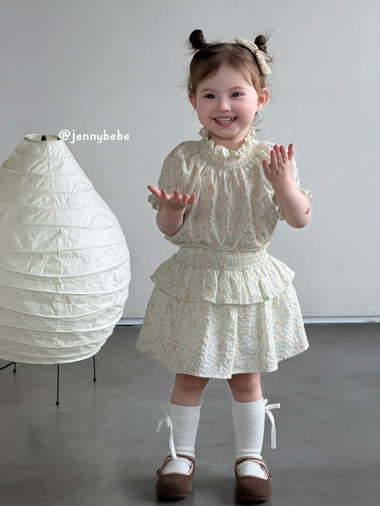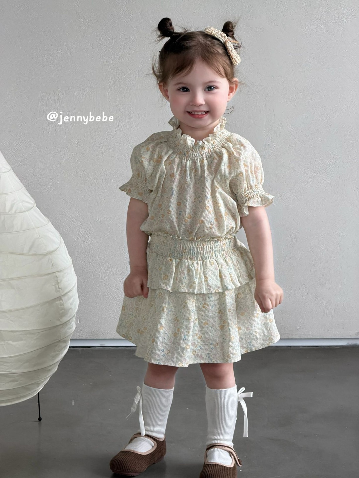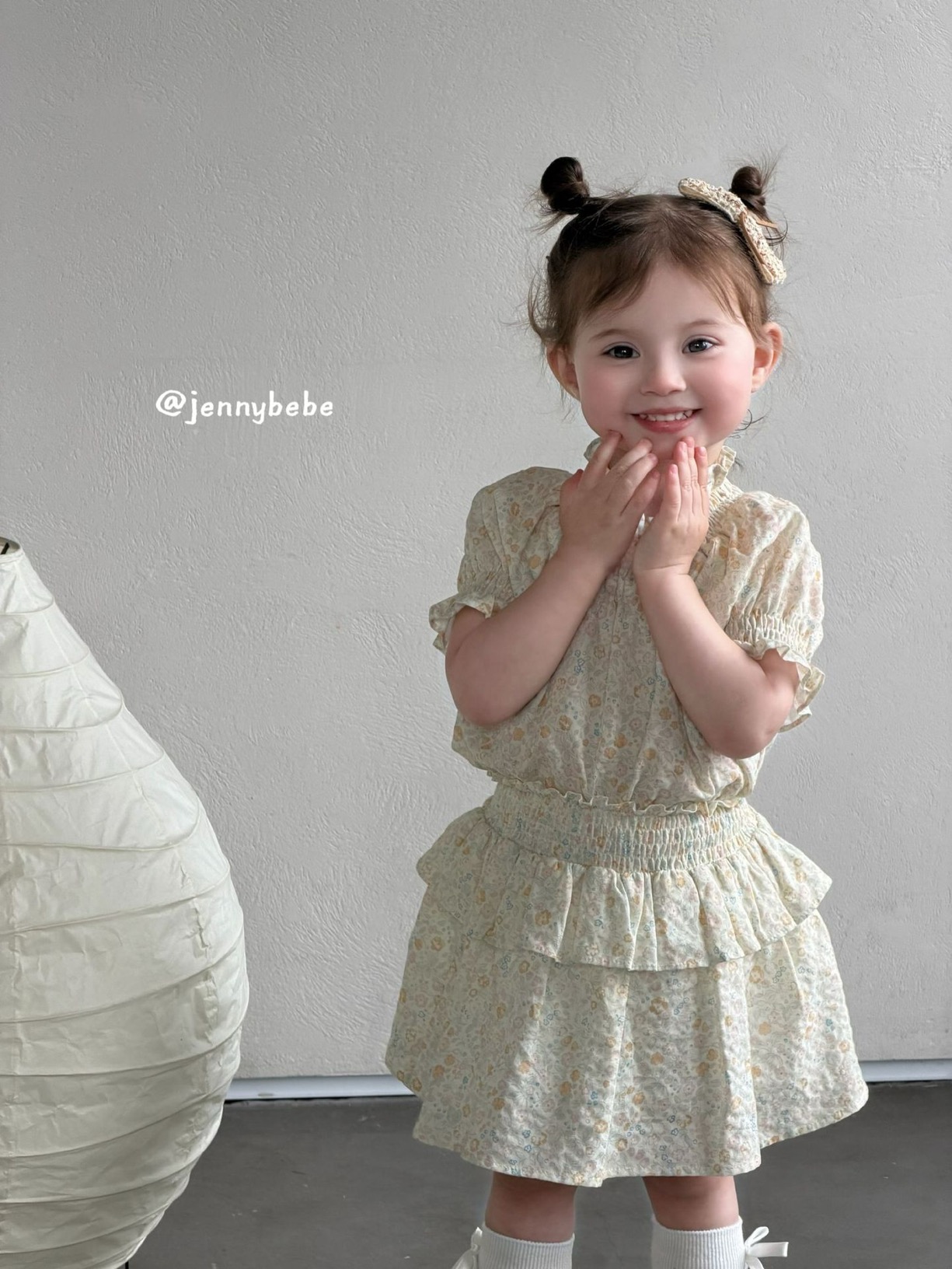 JE715|(80-110cm) 小碎花縮口袖套裝