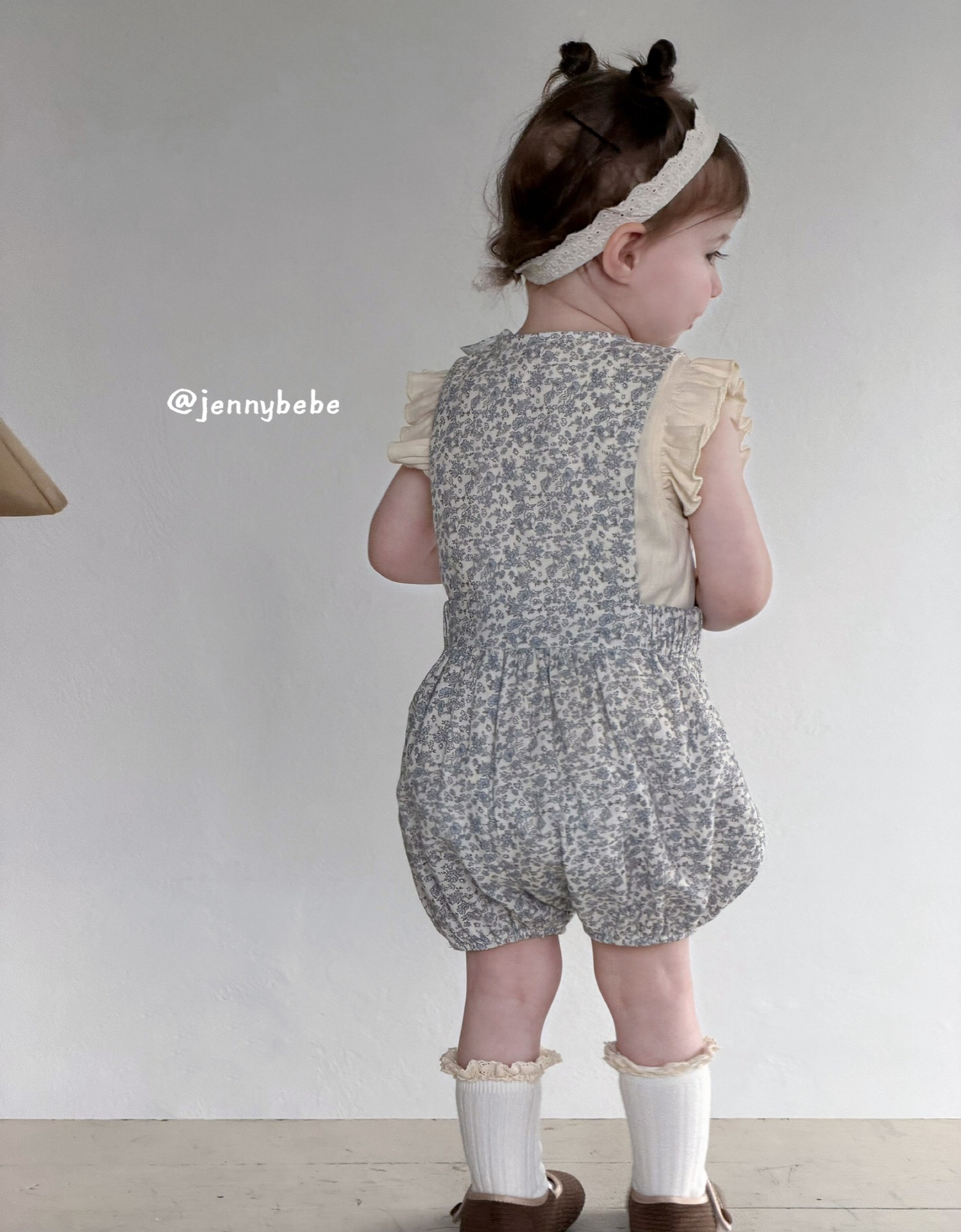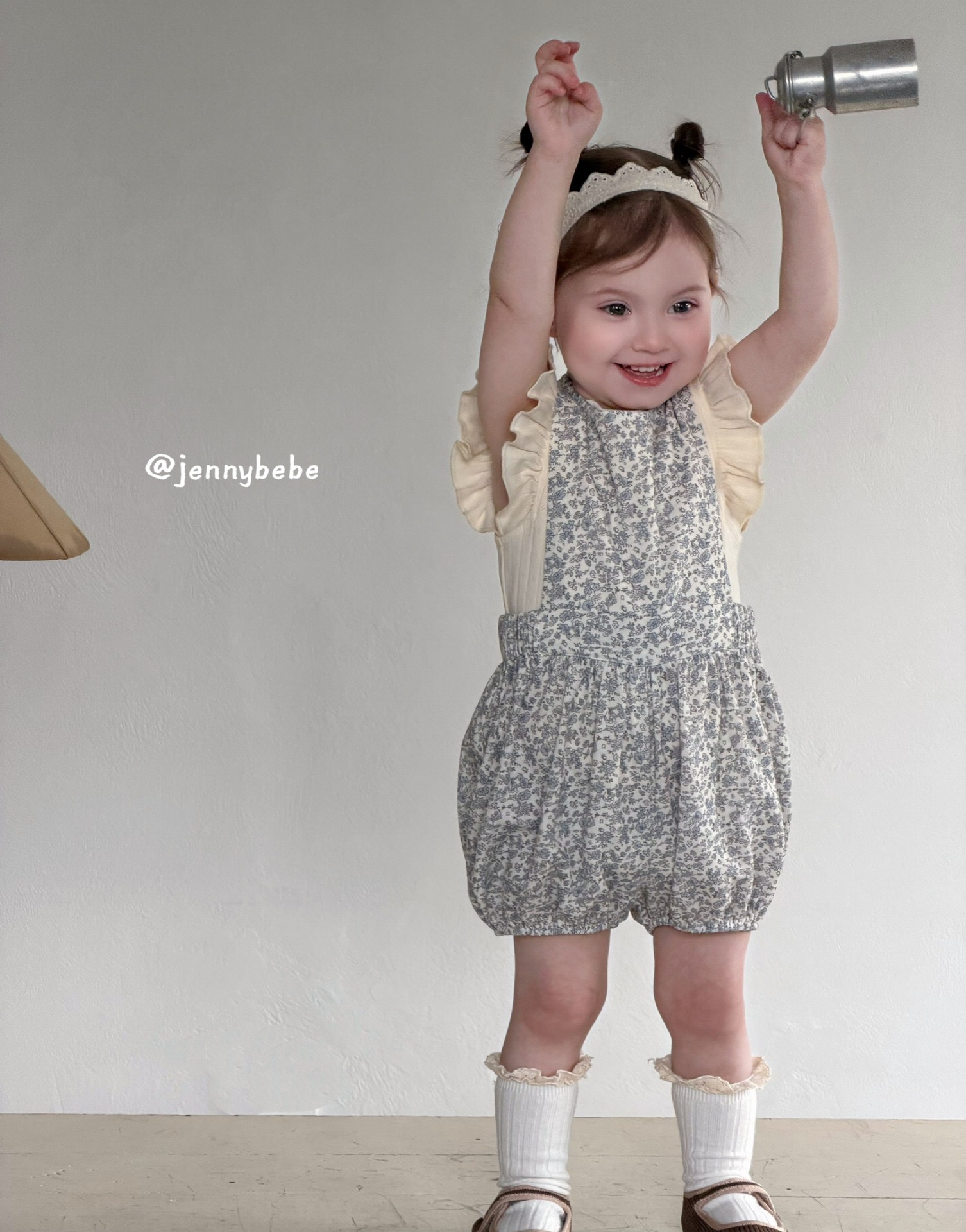 JE719|(80-110cm) 小碎花連身短褲/荷葉背心