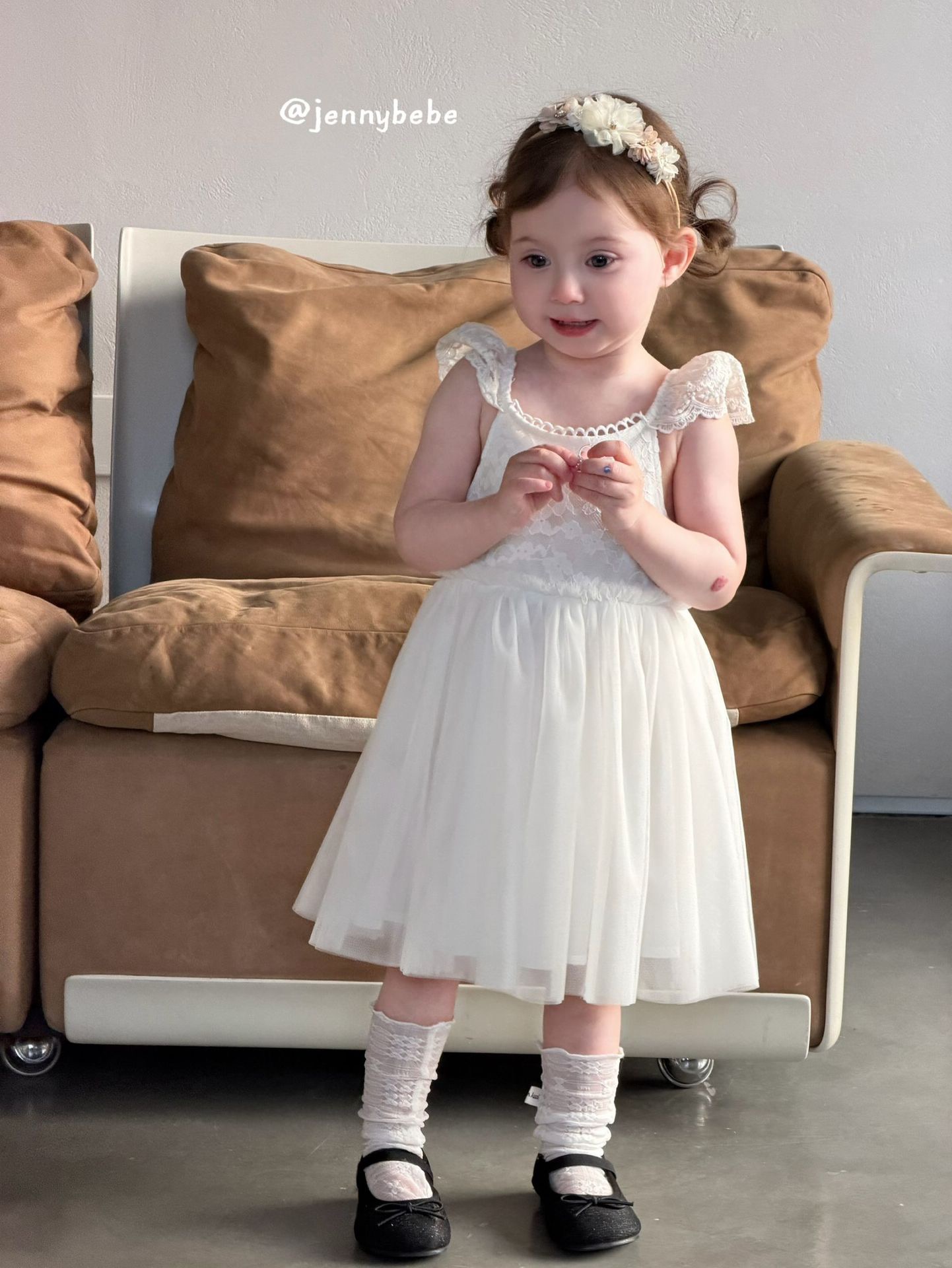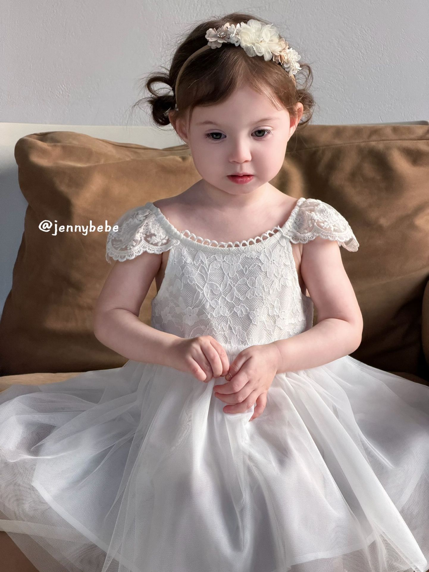 JE729|(80-110cm) 白天鵝壓紋薄紗洋裝