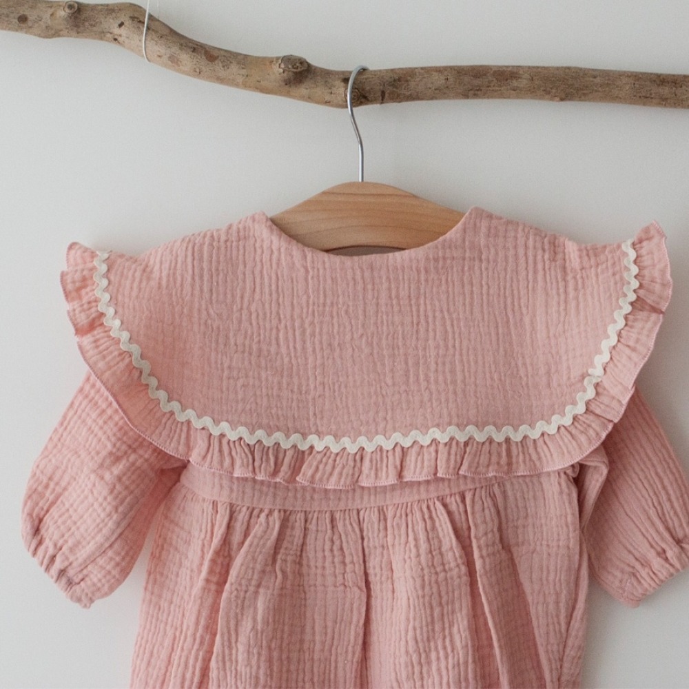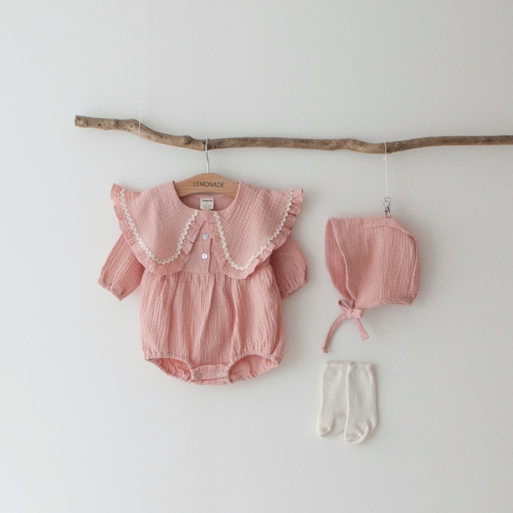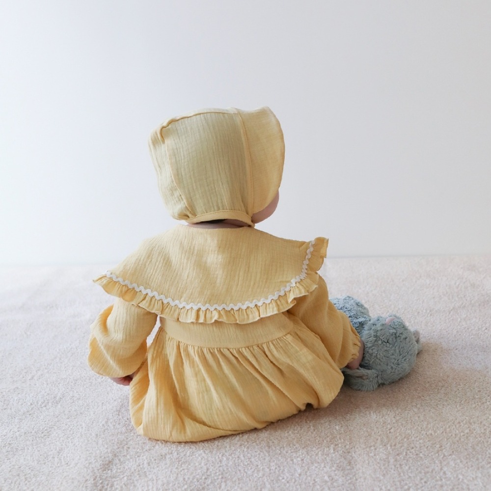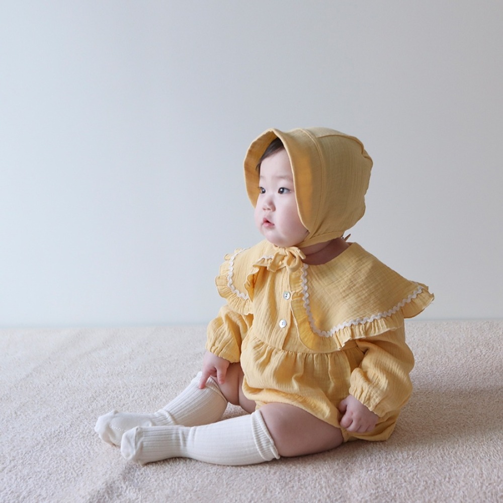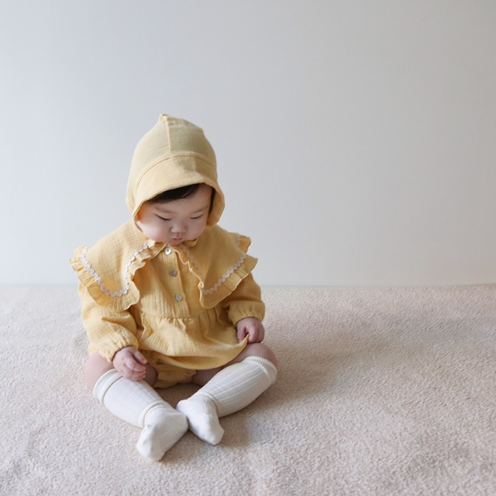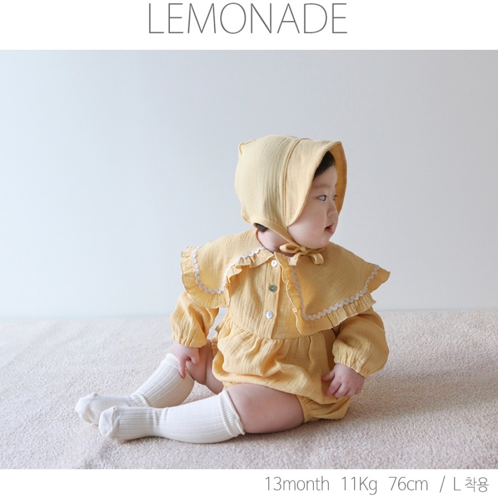 LEMONADE02|(55cm-85cm) 2色花瓣領包屁衣含帽子