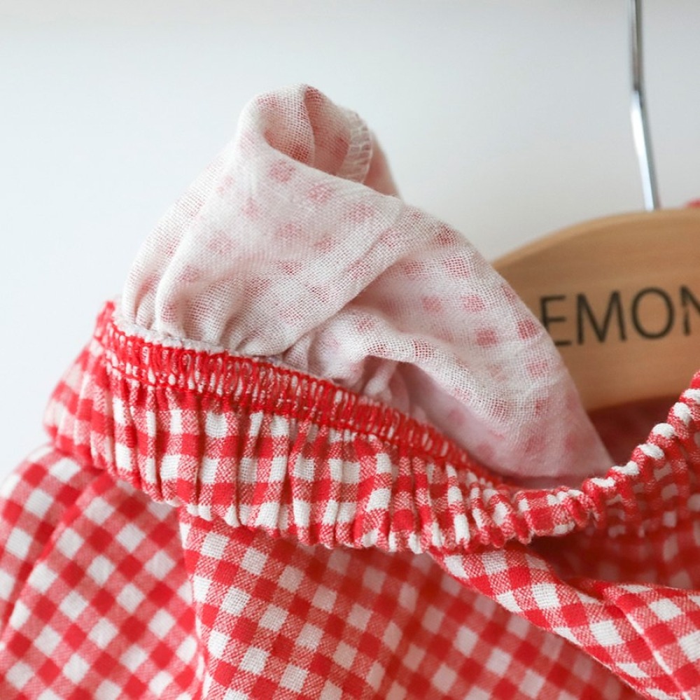 LEMONADE40|(55cm-85cm) 2色格紋翻領包屁衣含帽子