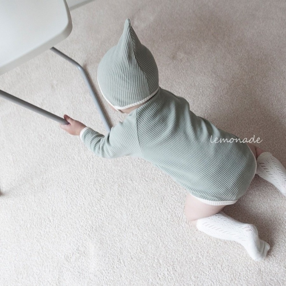 LEMONADE33|(55cm-85cm) 2色雙條紋包屁衣含帽子