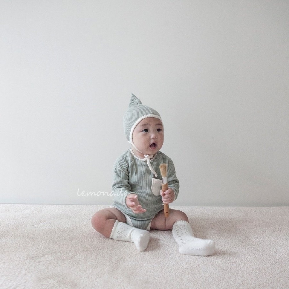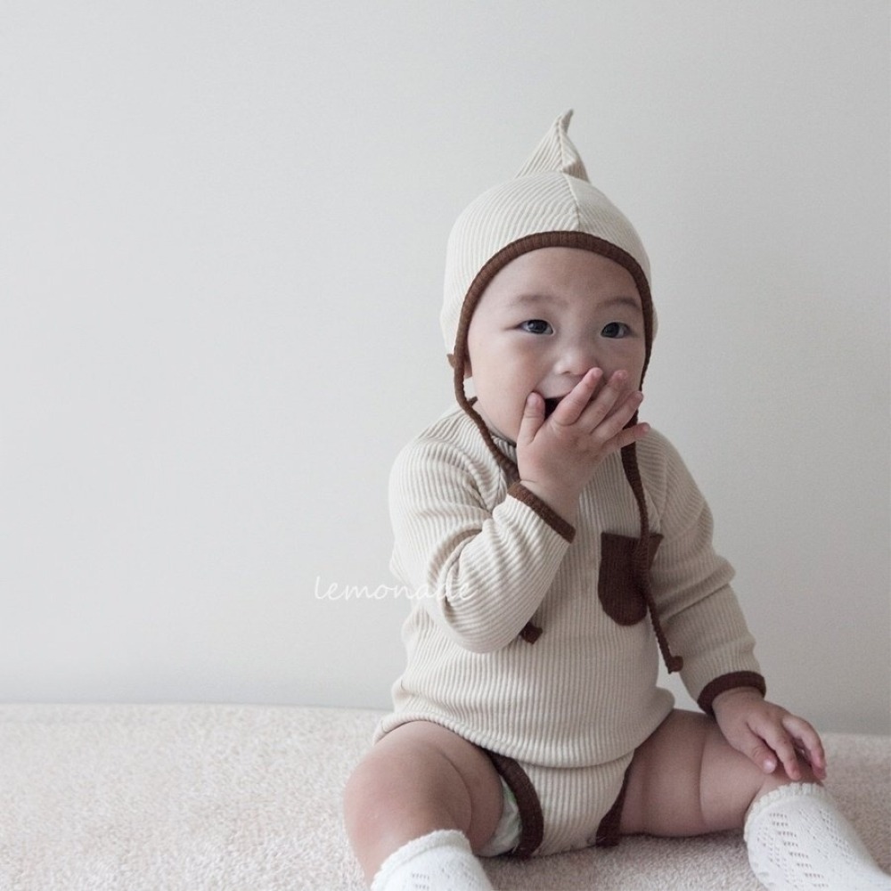 LEMONADE20|(55cm-85cm) 3色撞色口袋包屁衣含帽子