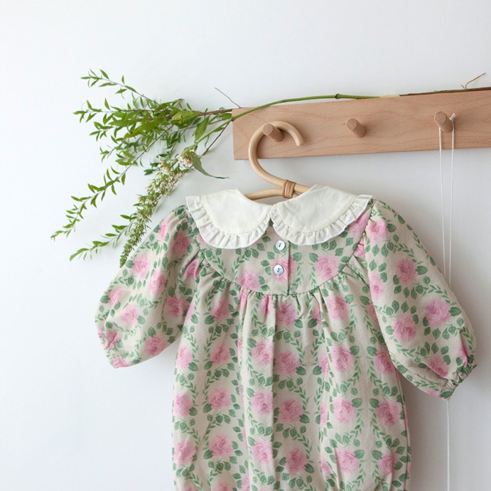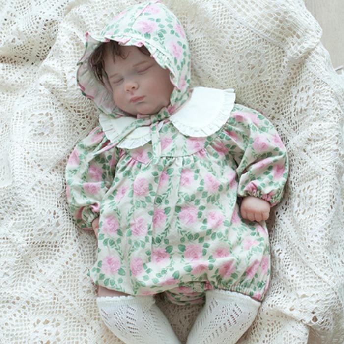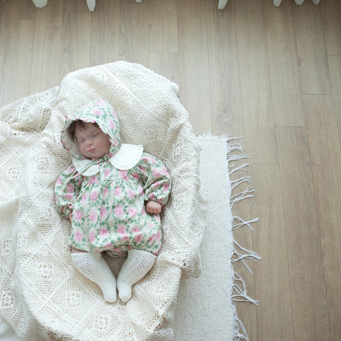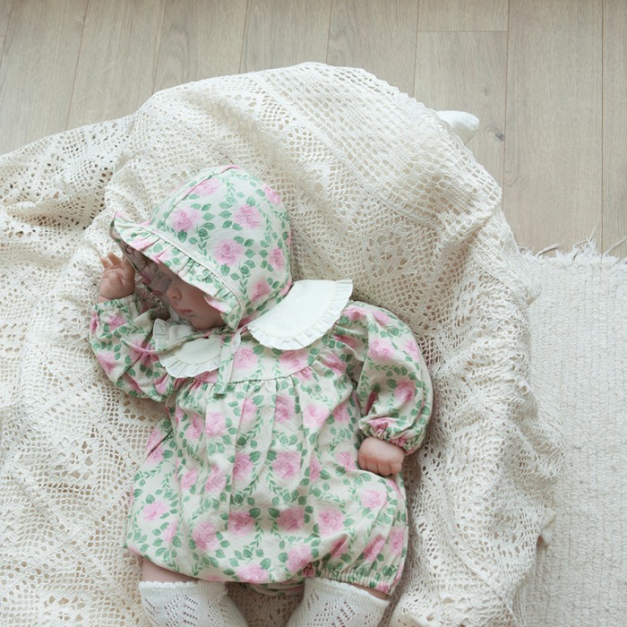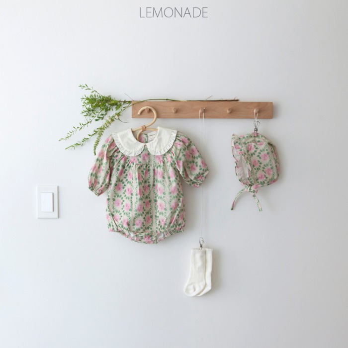 LEMONADE25|(55cm-85cm) 2色玫瑰碎花包屁衣含帽子