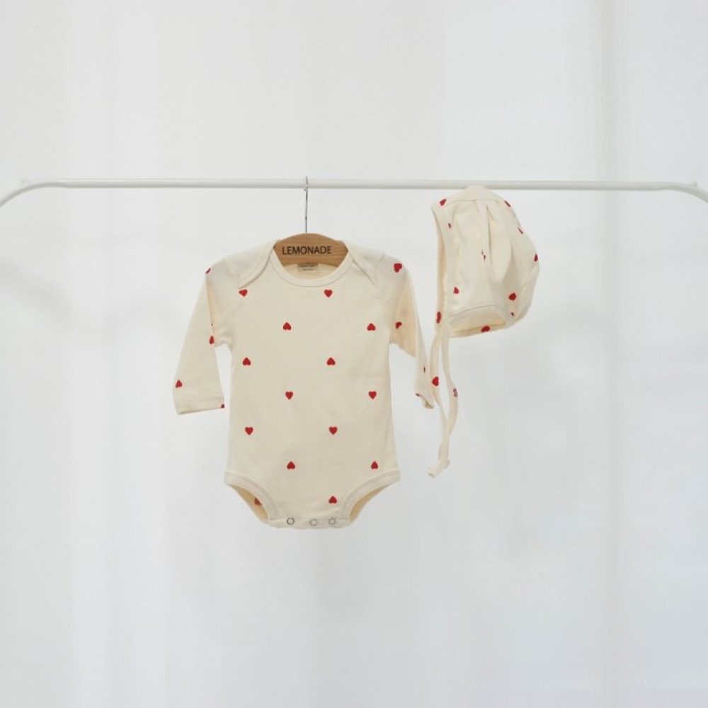 LEMONADE34|(55cm-85cm) 2色小愛心包屁衣含帽子