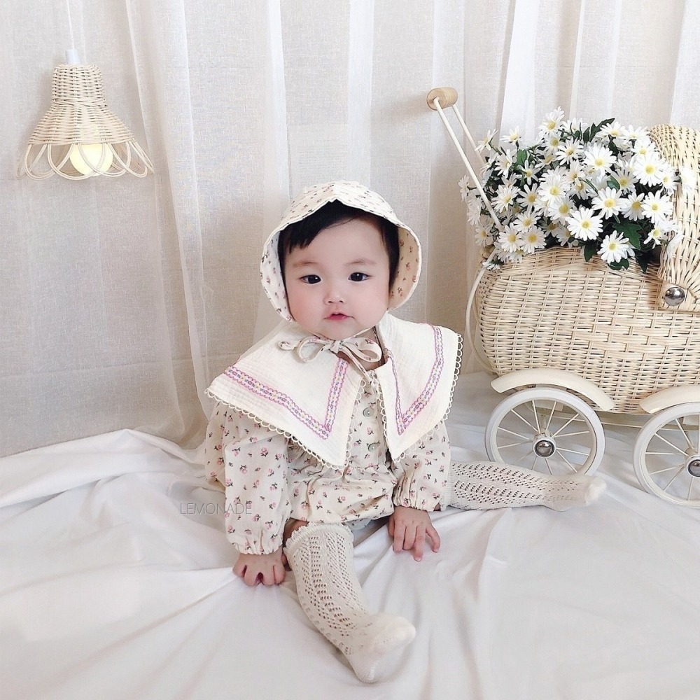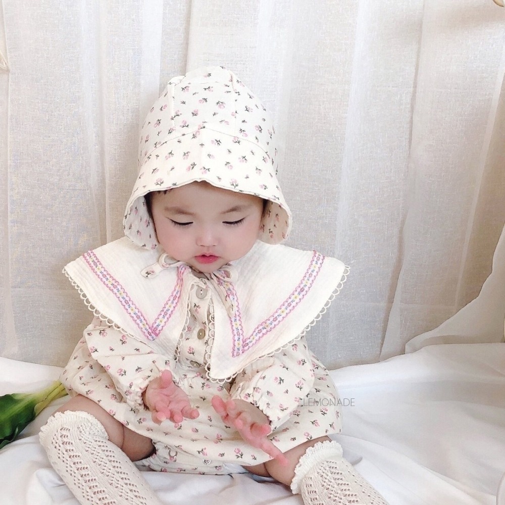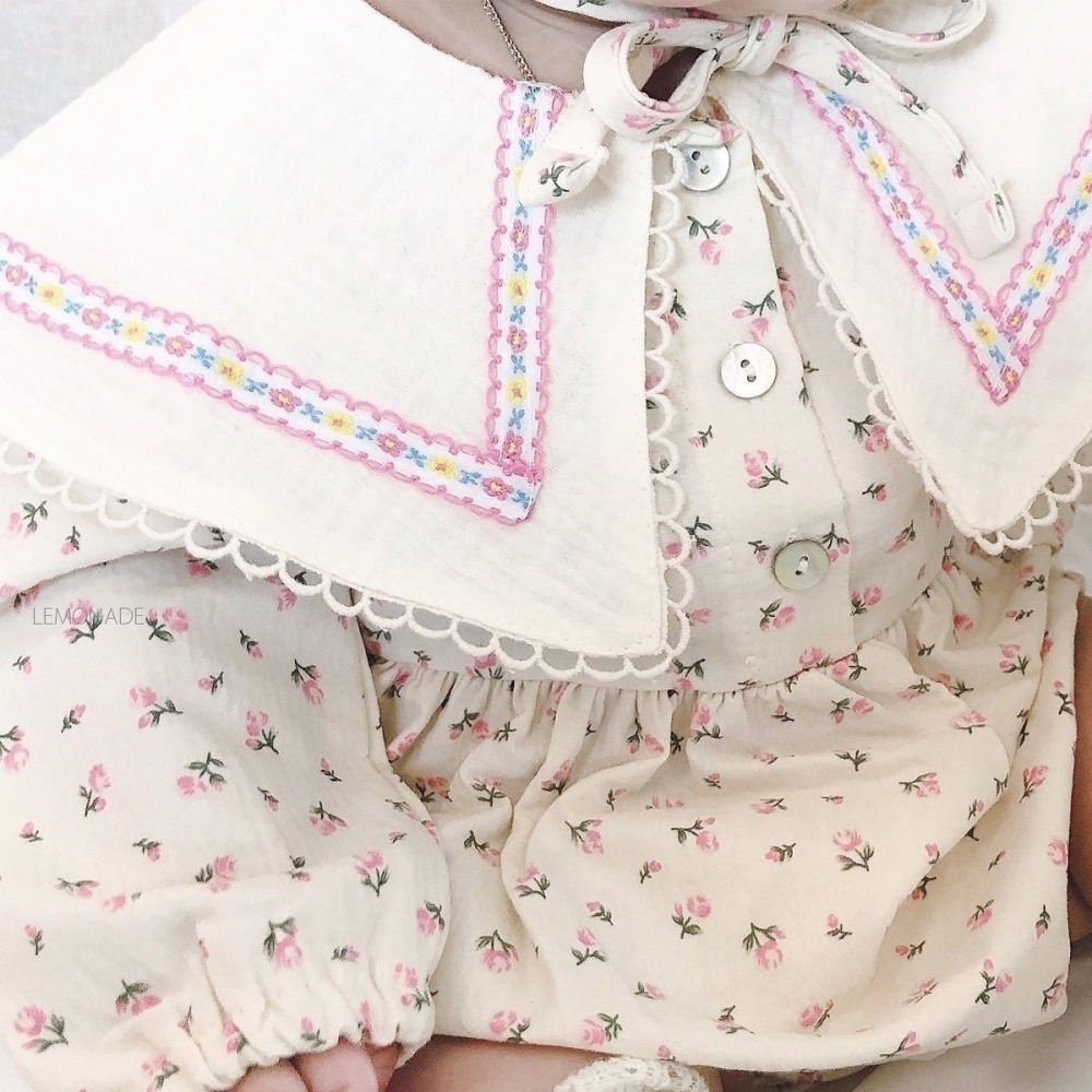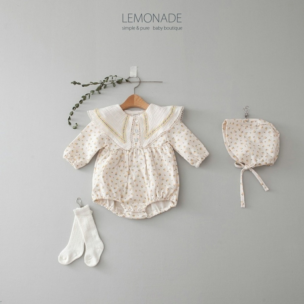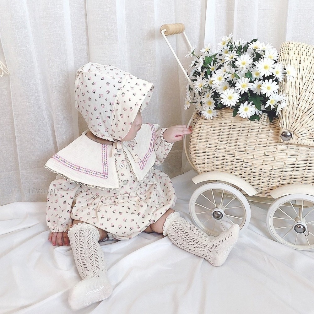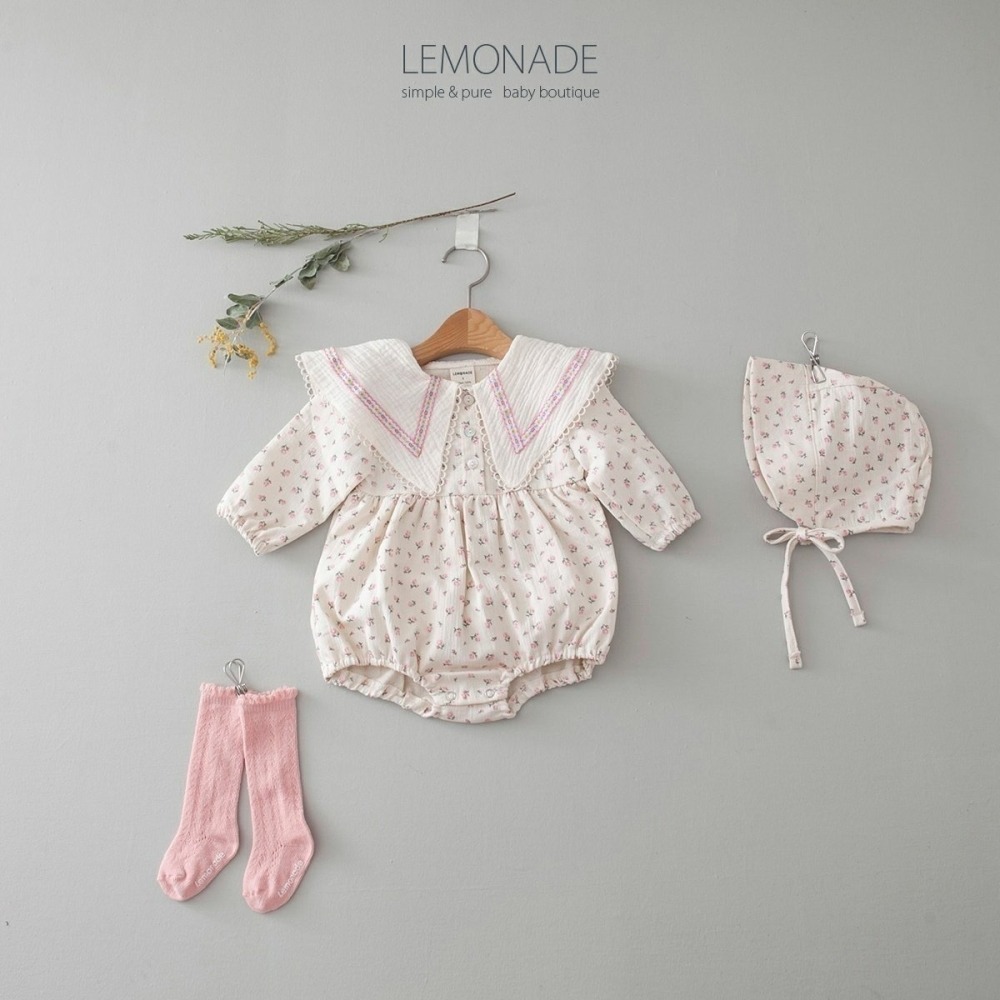 LEMONADE37|(55cm-85cm) 2色玫瑰碎花翻領包屁衣含帽子