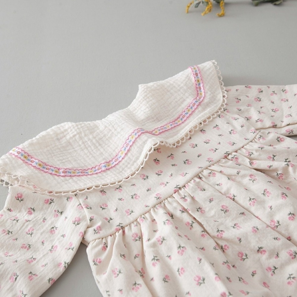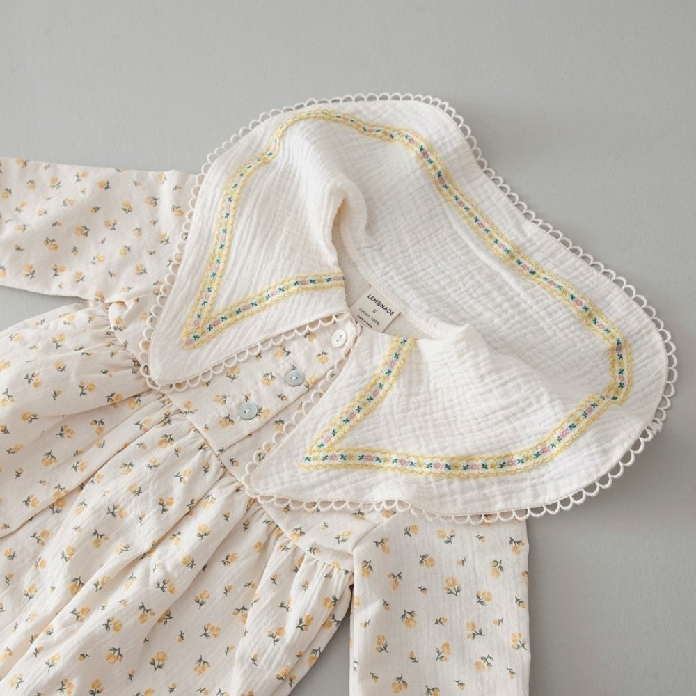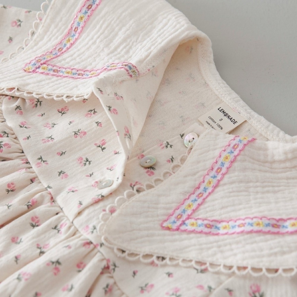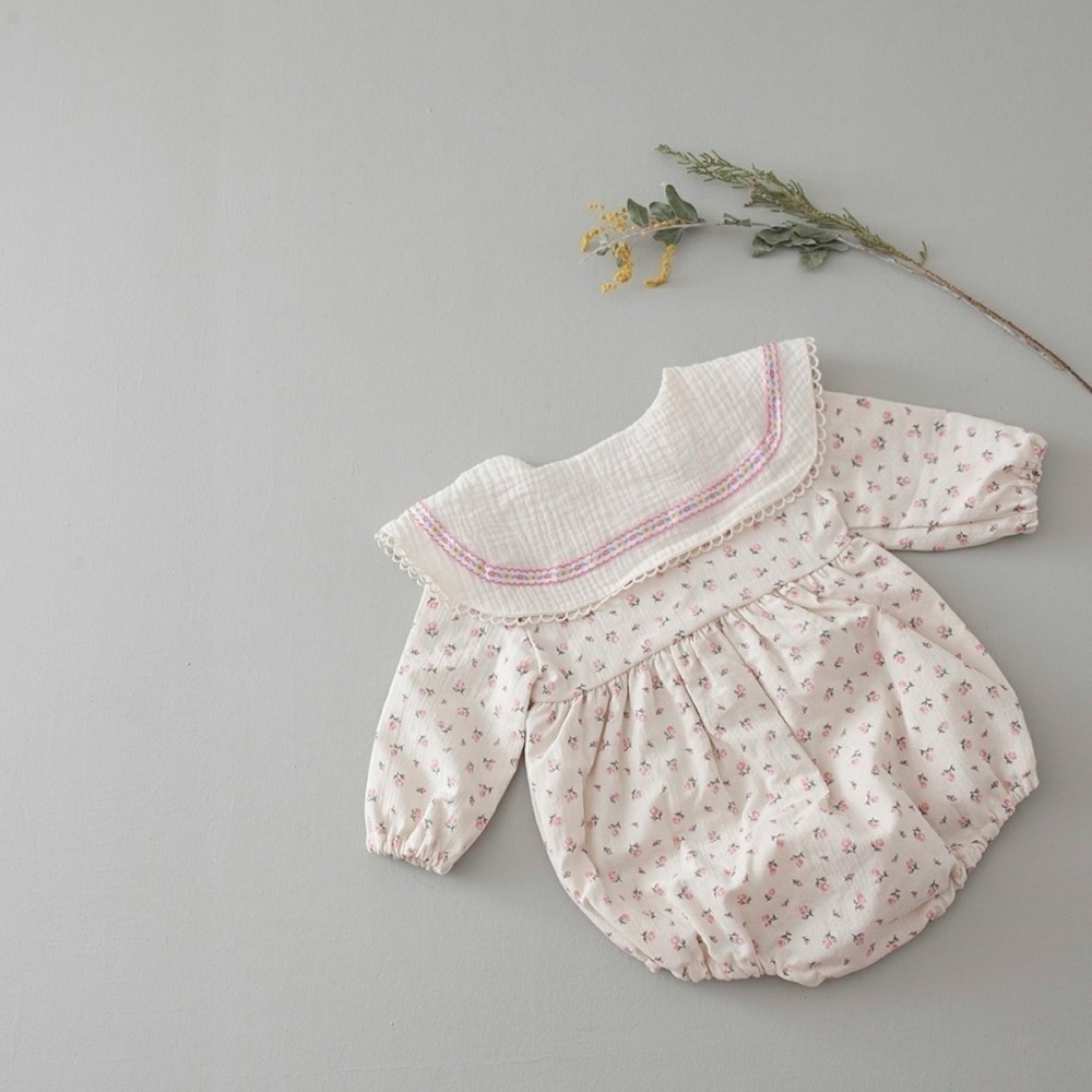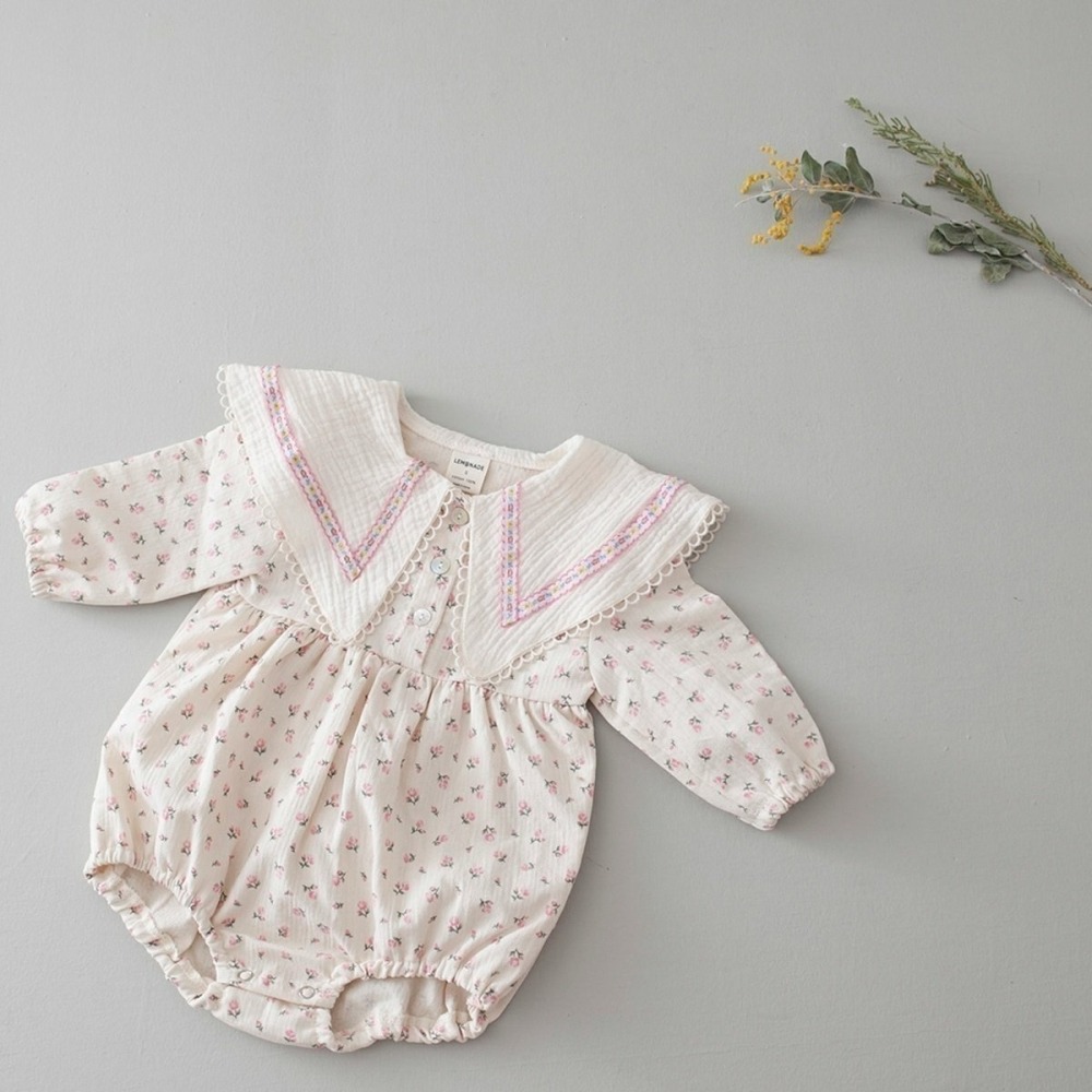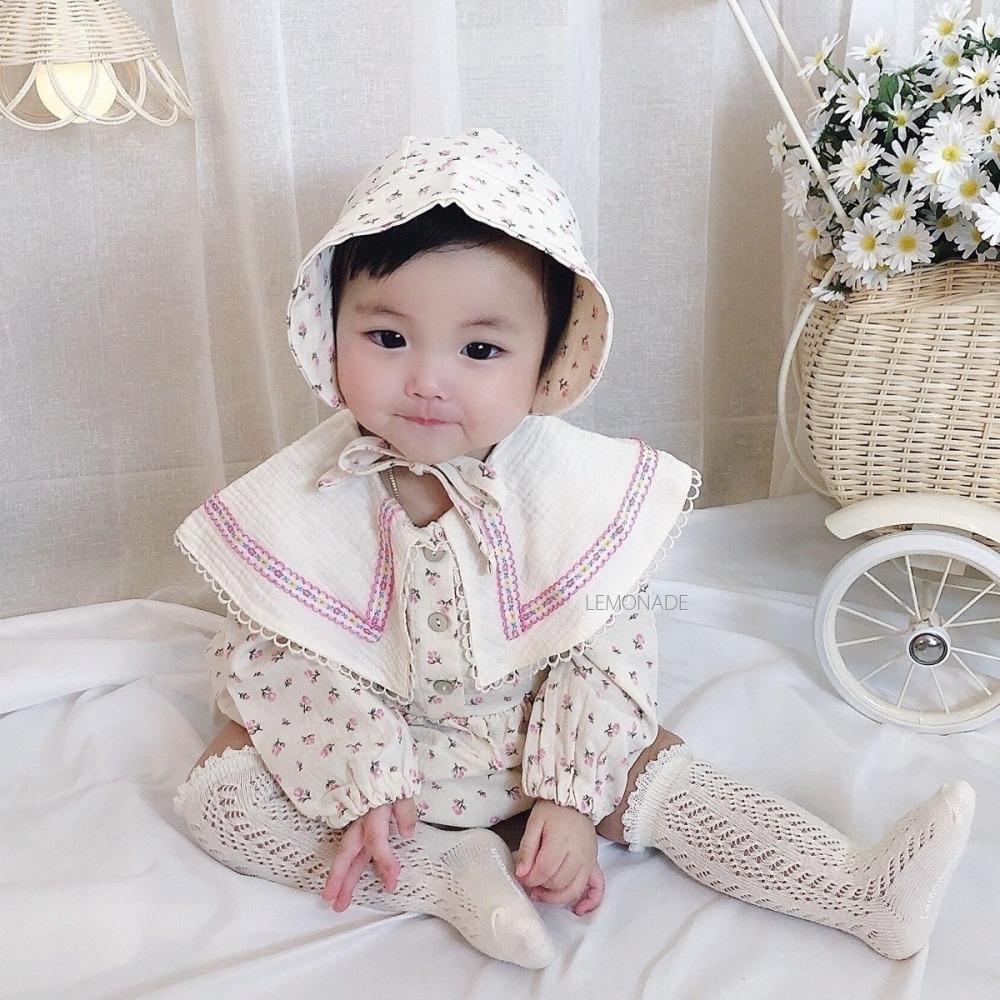 LEMONADE37|(55cm-85cm) 2色玫瑰碎花翻領包屁衣含帽子