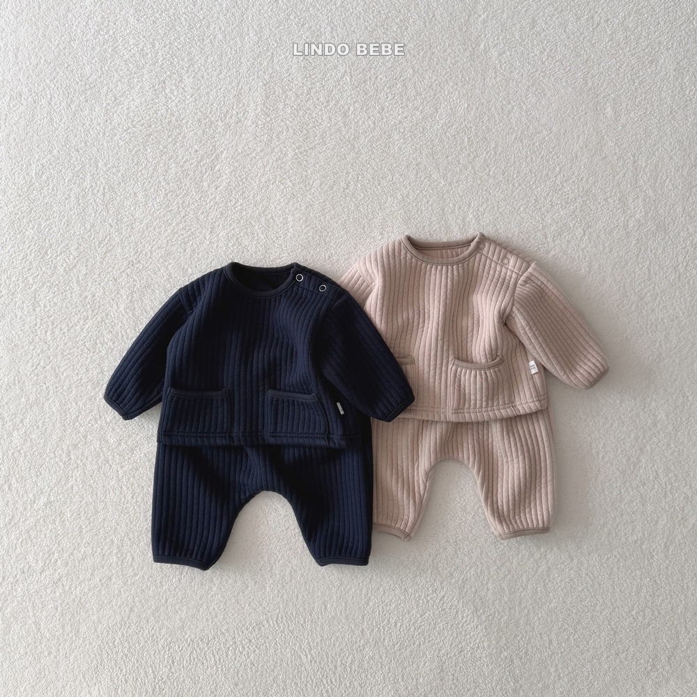 Lindo06|(3m-18m) 壓紋開扣上衣套裝