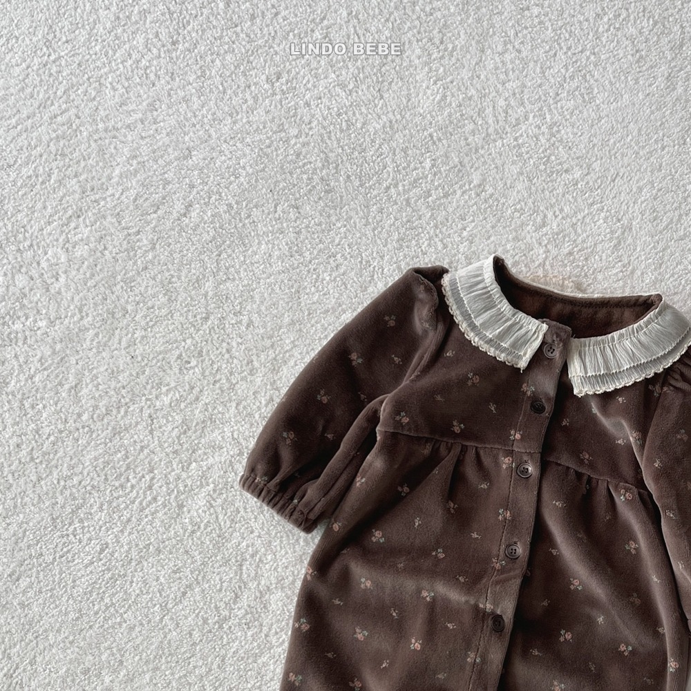 Lindo10|(3m-18m) 絲絨滾邊領連身衣