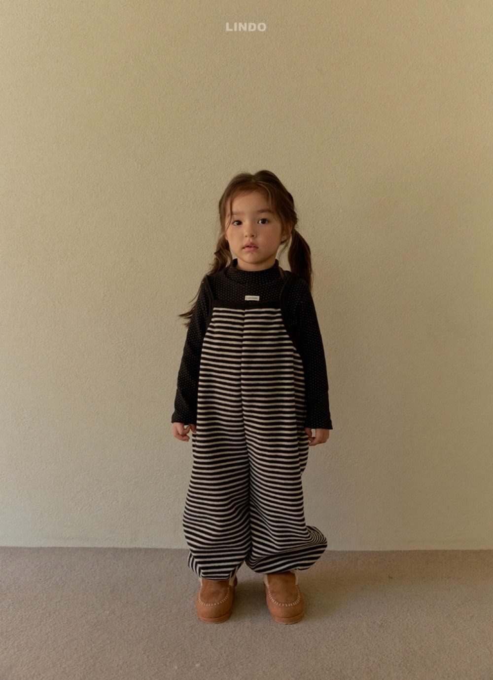 Lindo35|(80cm-125cm) 磨毛肩帶連身褲