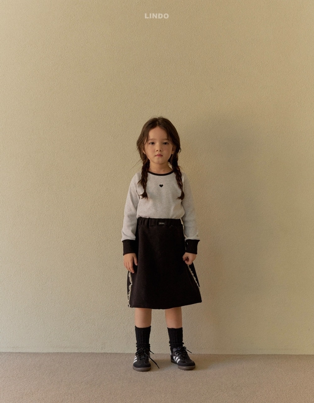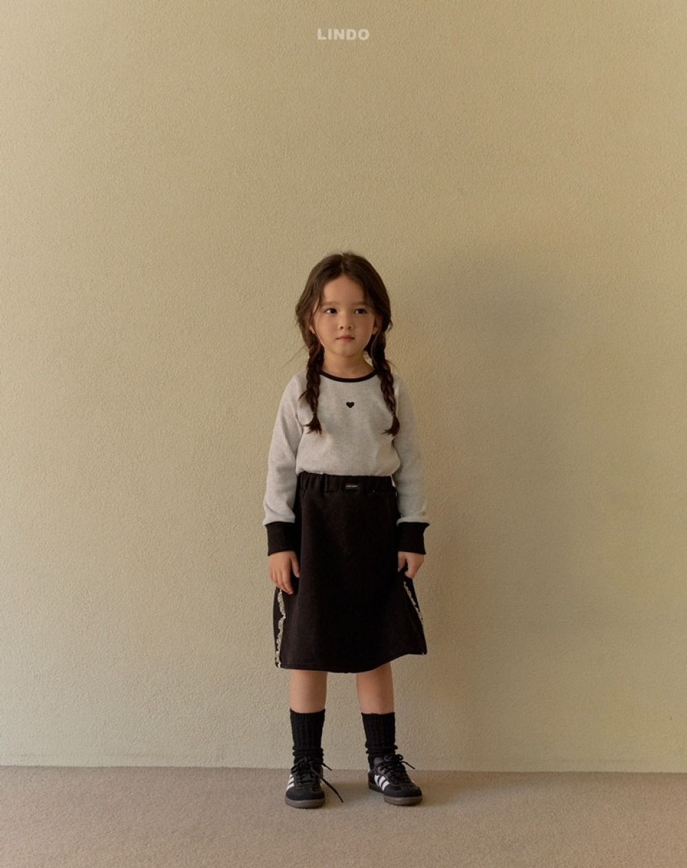 Lindo39|(80cm-125cm) 愛心撞色上衣