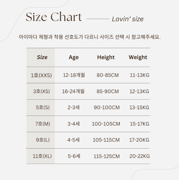 《請依照寶貝的身型,參考尺寸表購買》