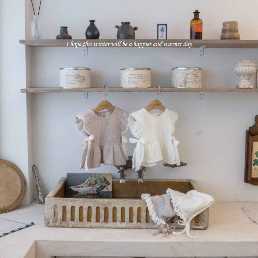 M-KIDS18|(55-85cm) 2色蕾絲花邊針織綁帶帽