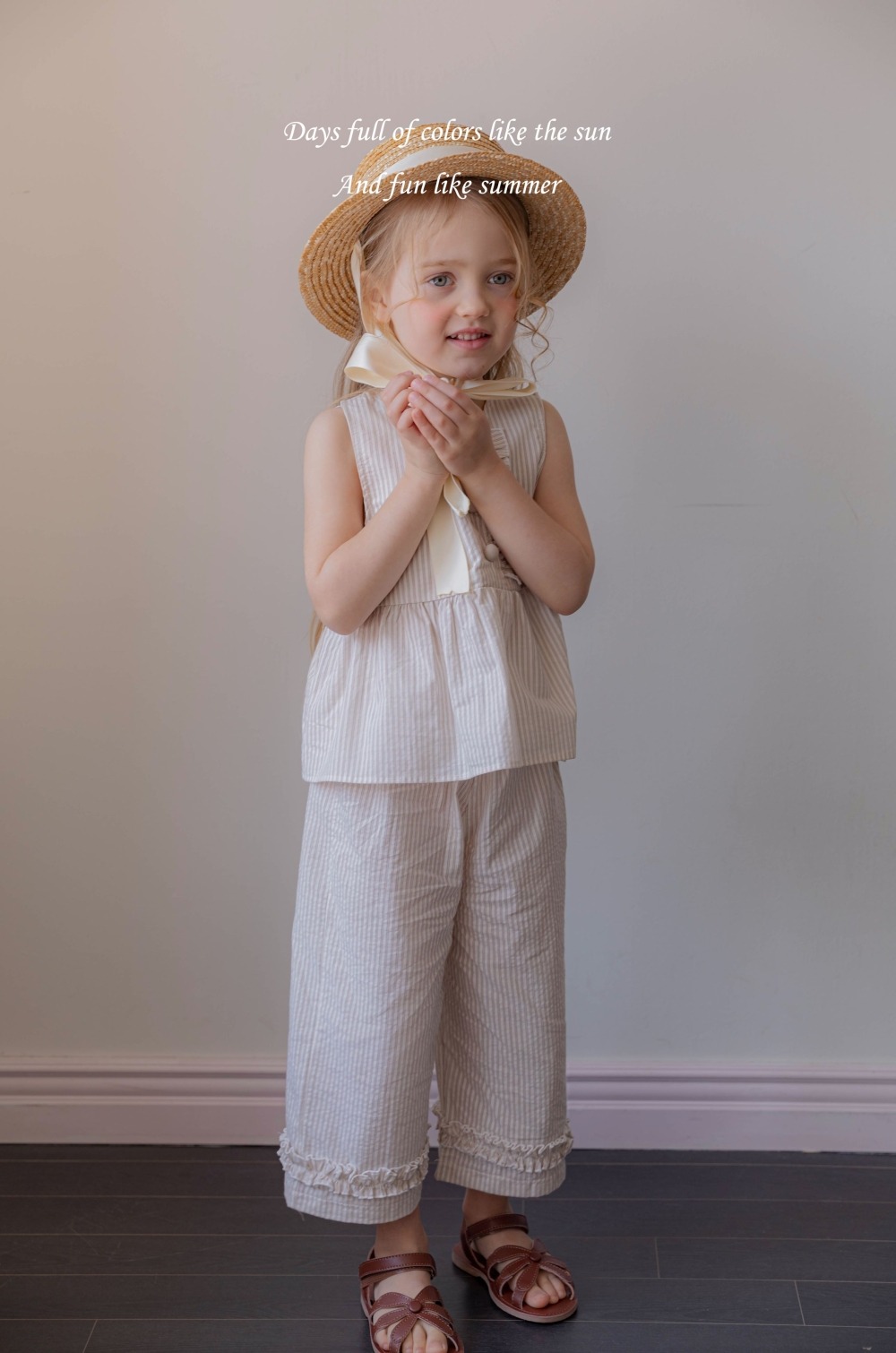 M-KIDS23|(65-115cm) 條紋滾邊直筒長褲