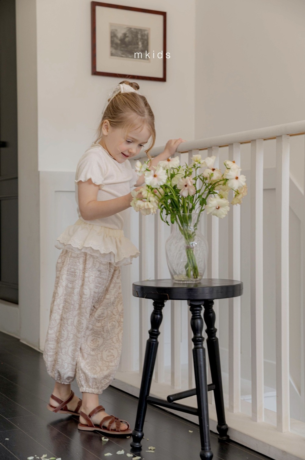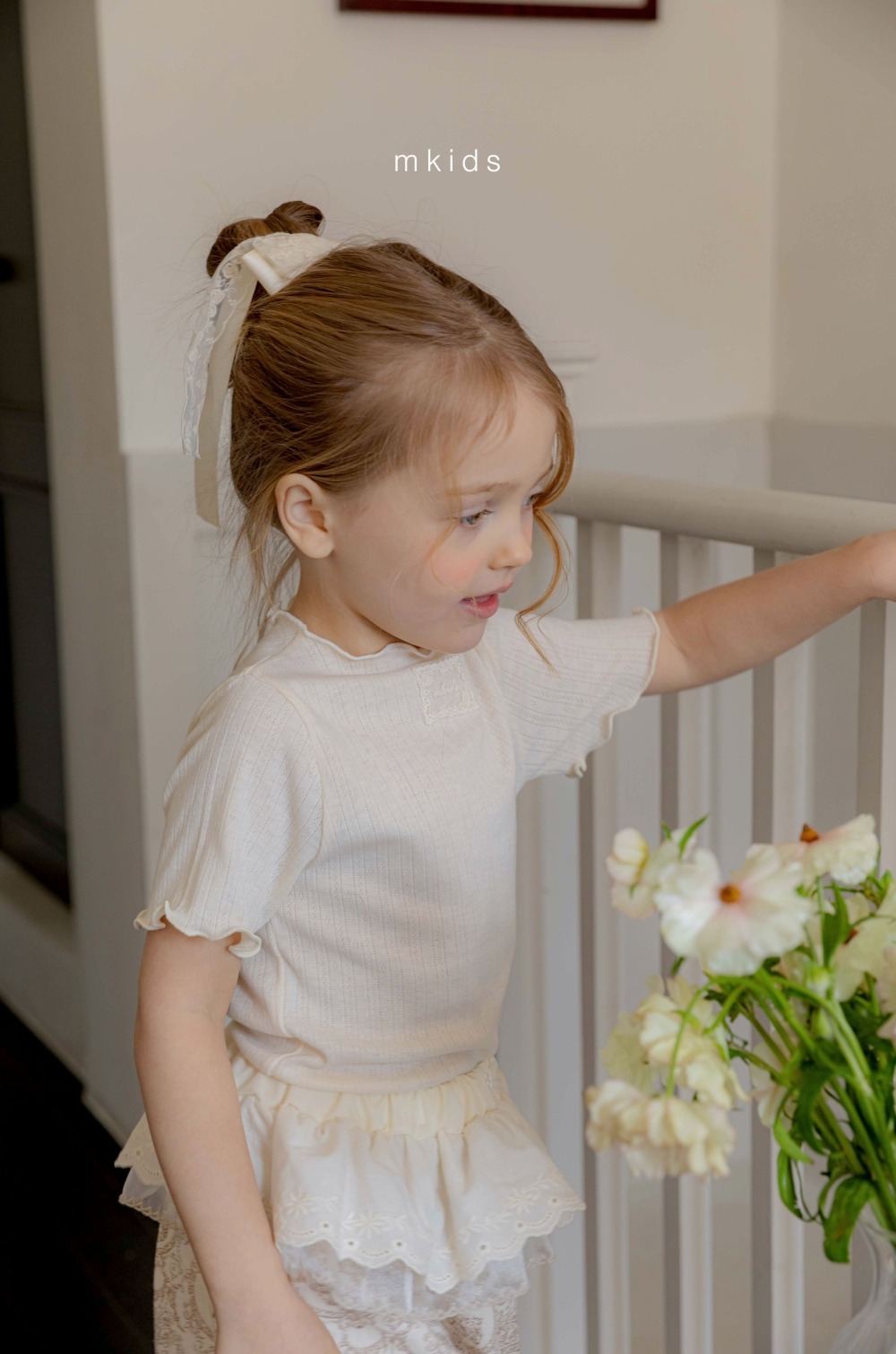 M-KIDS27|(65-115cm) 捲邊蕾絲標上衣