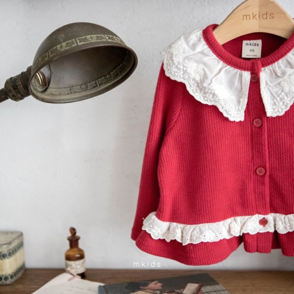 M-KIDS29|(65-115cm) 3色蕾絲領荷葉邊開襟外套