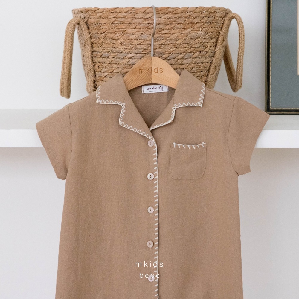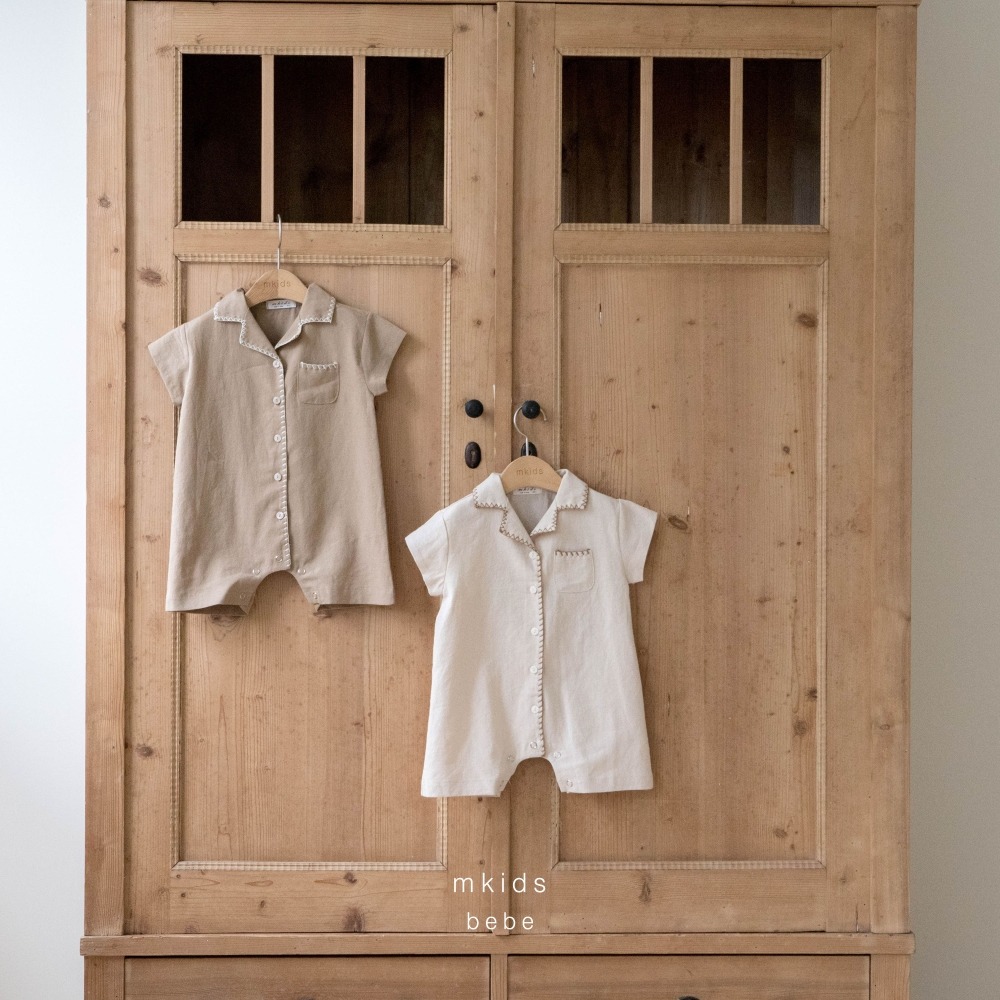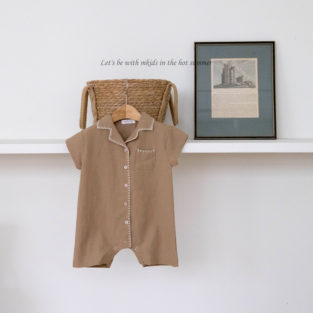 M-KIDS35|(65-80cm) 棉麻滾線連身衣