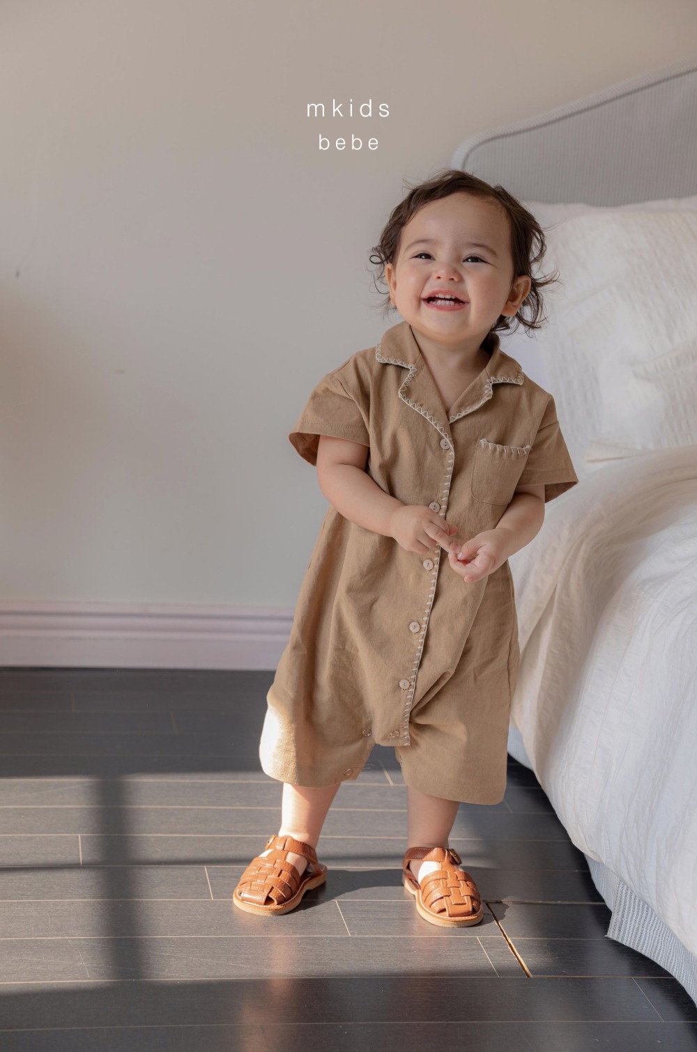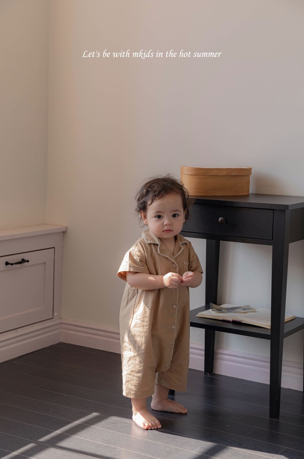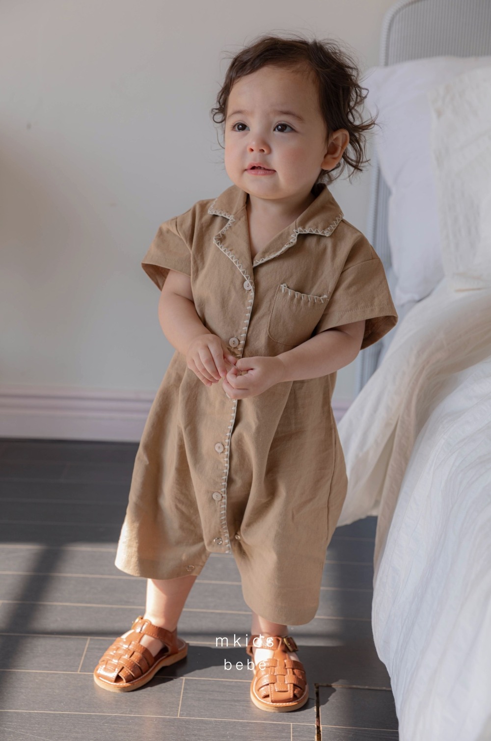 M-KIDS35|(65-80cm) 棉麻滾線連身衣