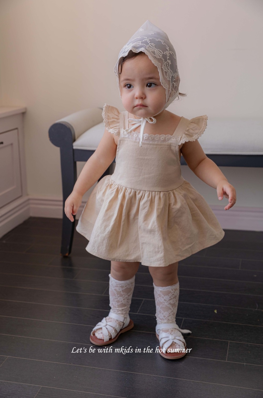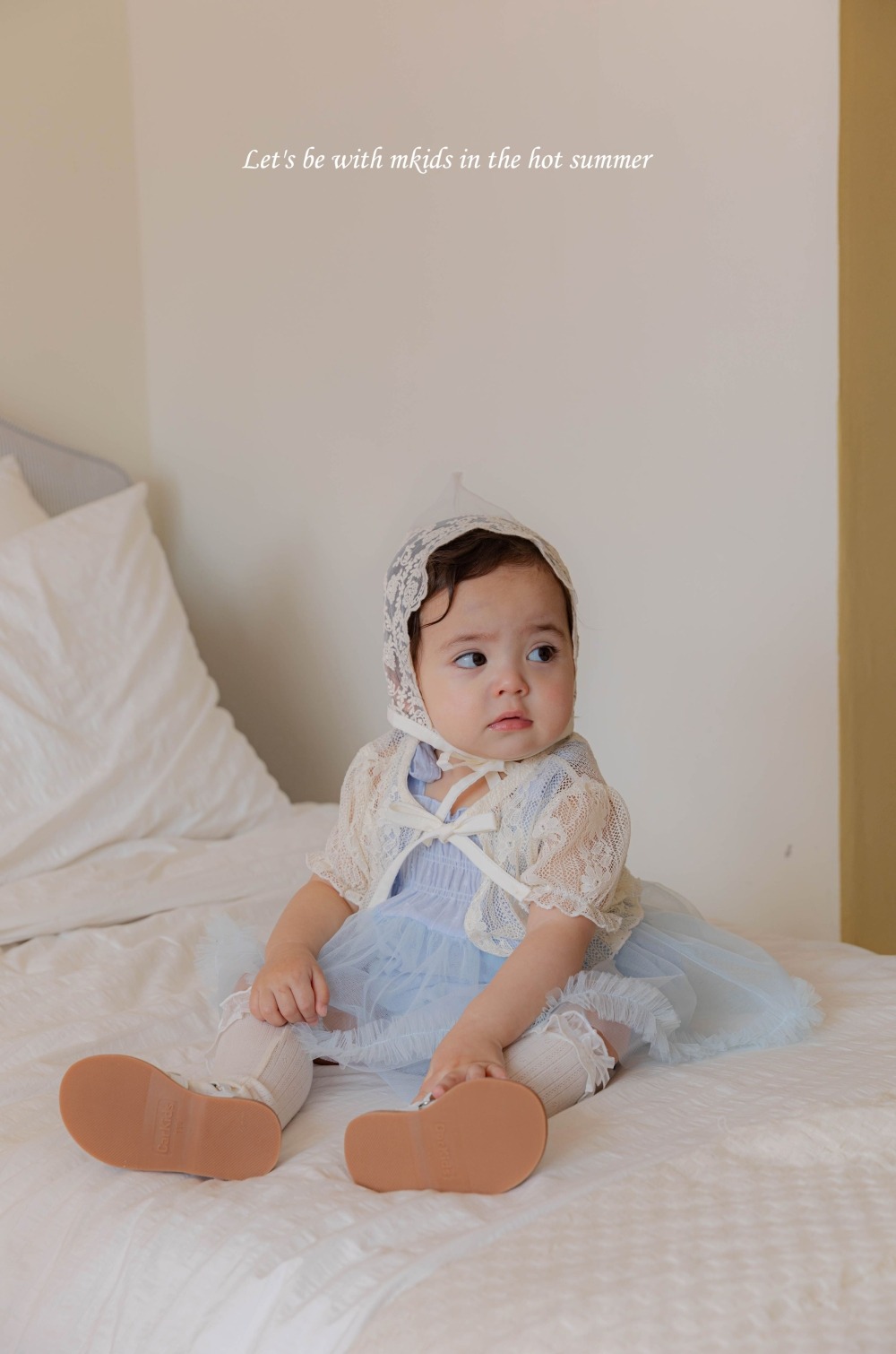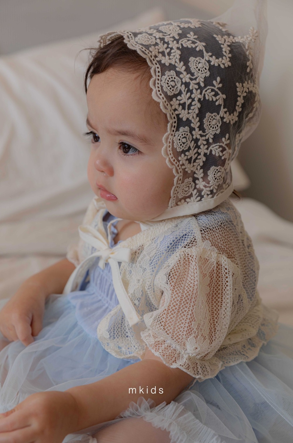 M-KIDS37|(65-80cm) 蕾絲綁帶帽