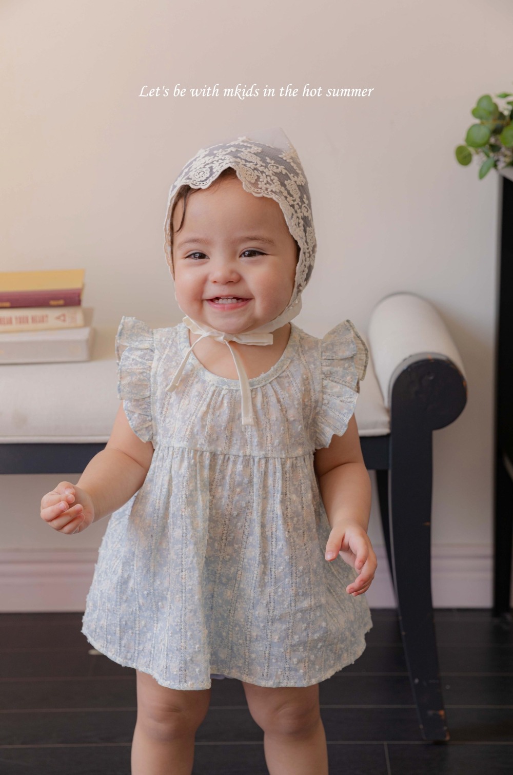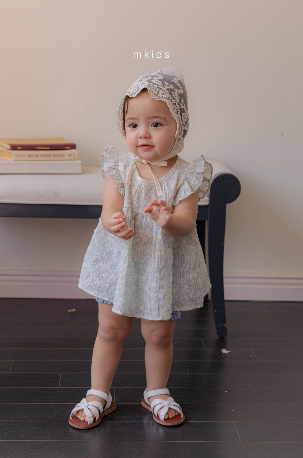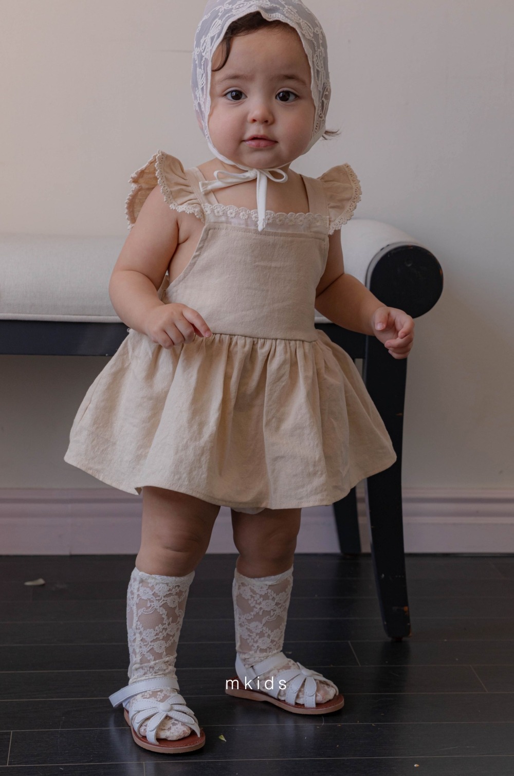 M-KIDS37|(65-80cm) 蕾絲綁帶帽