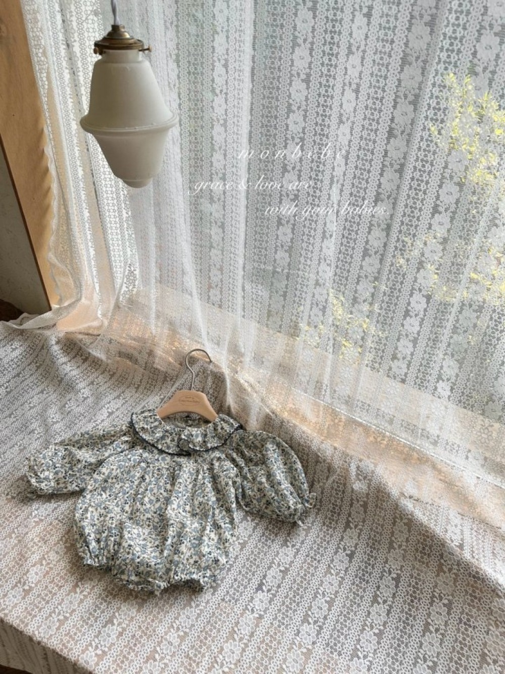 Marron 38|(3m-18m) 法式蕾絲領縮口袖包屁衣