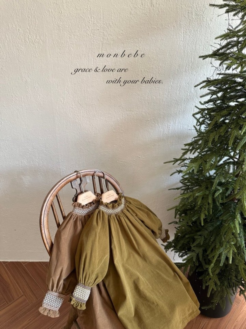 MONBEBE05|(1y-8y) 冬季滾邊縮口洋裝