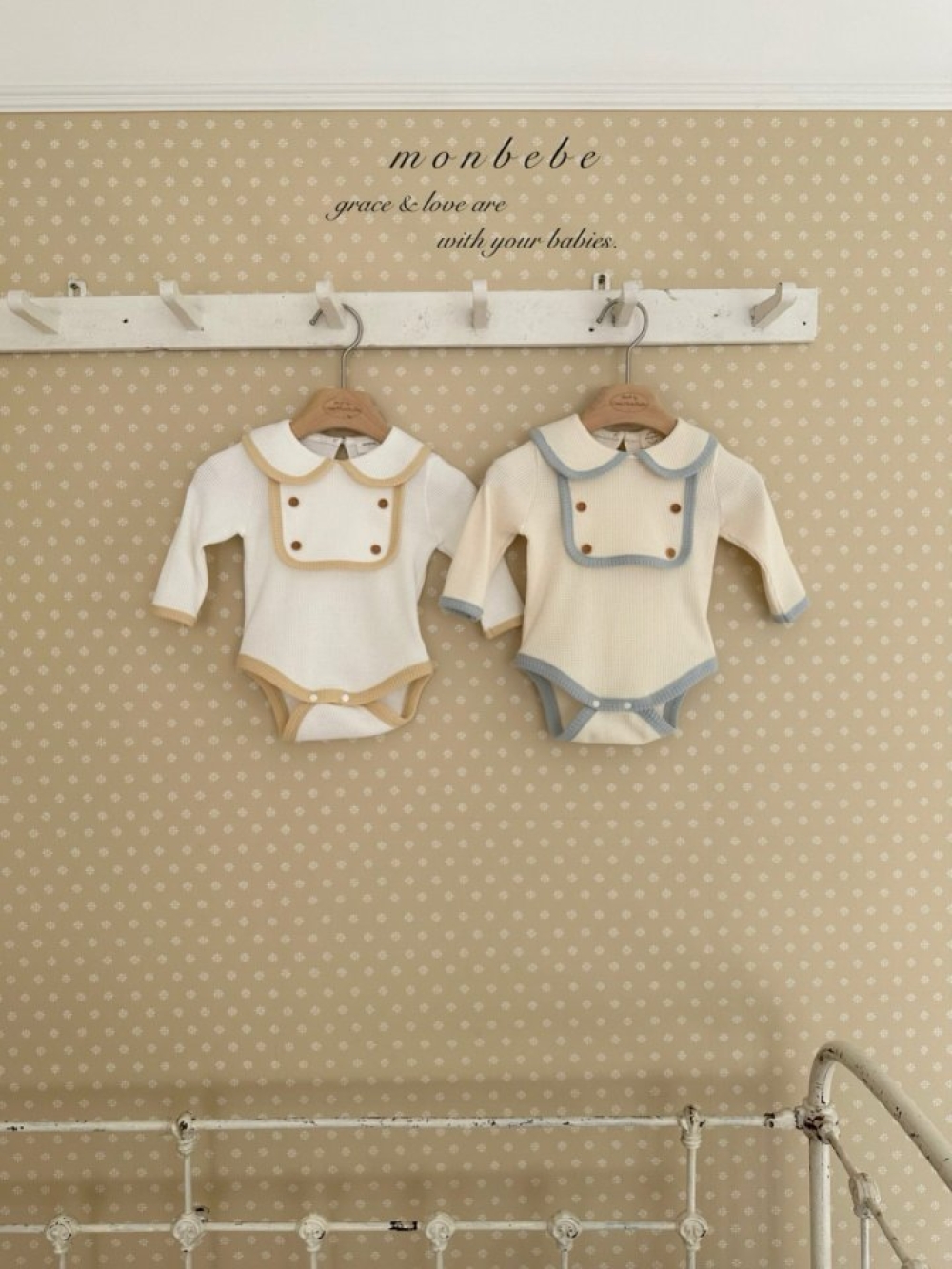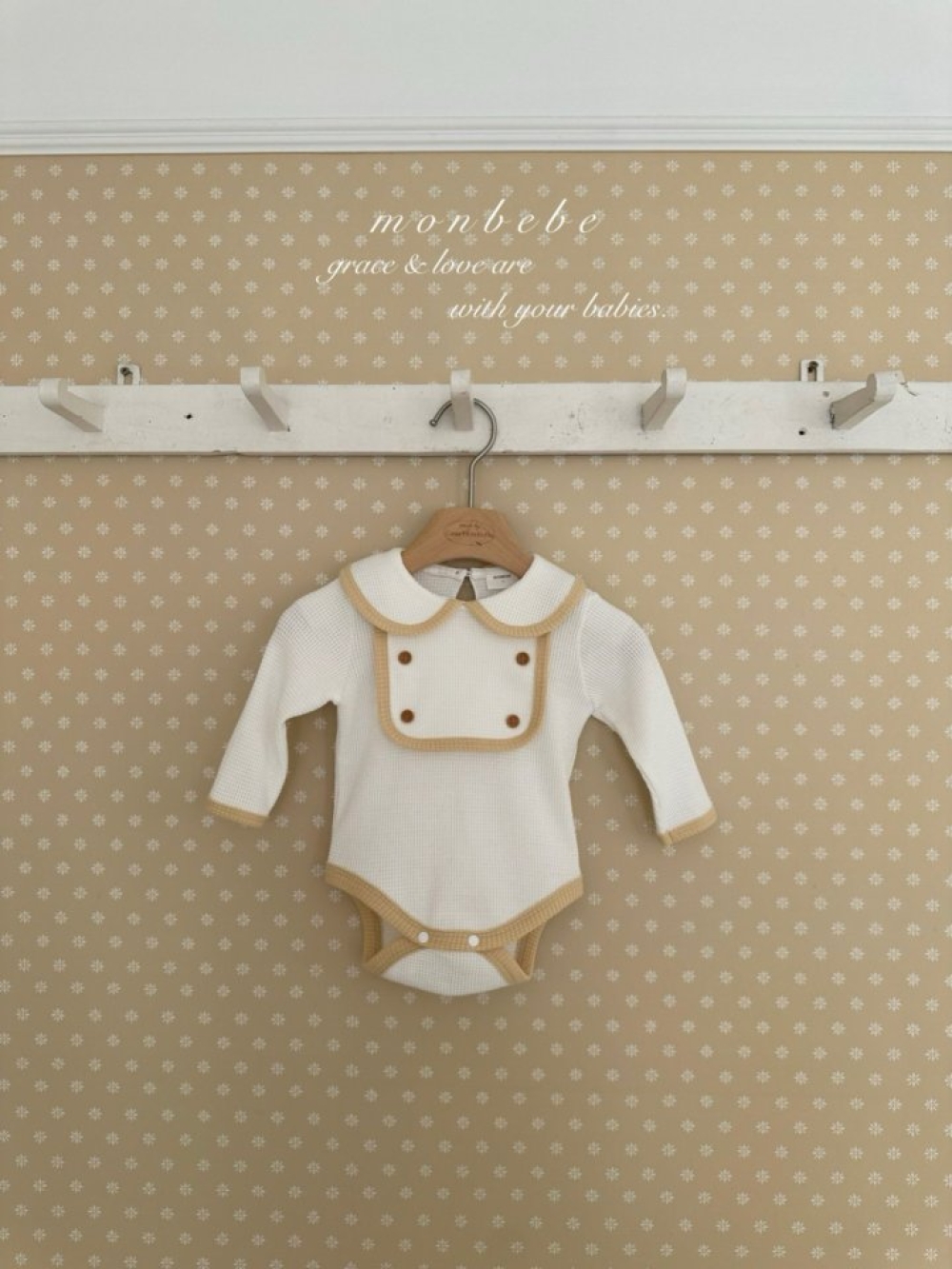 MONBEBE05|(3m-24m) 滾邊排釦華夫格包屁衣