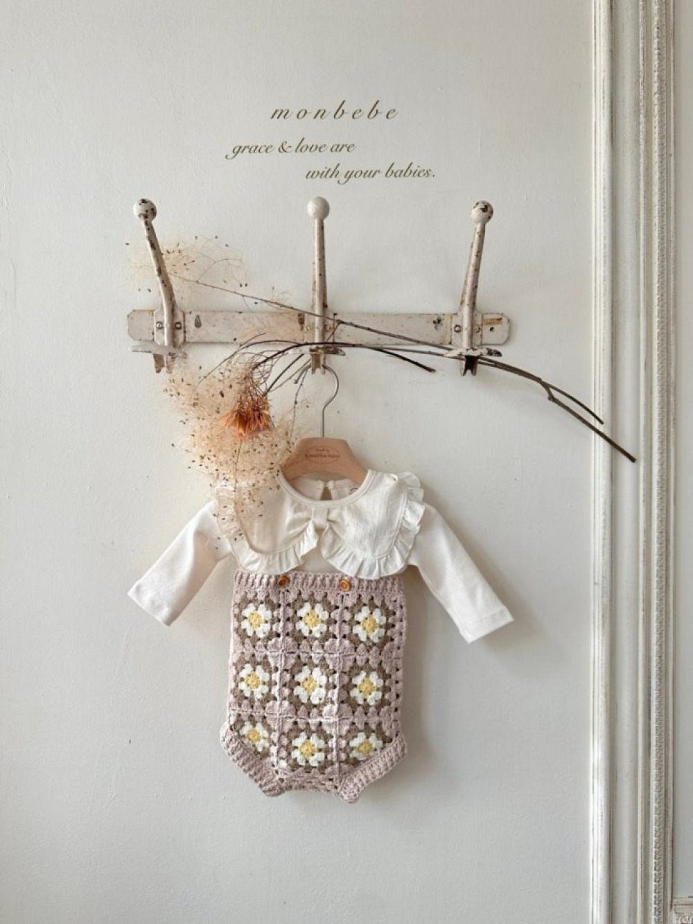 MONBEBE28|(3m-12m) 手鉤蕾絲小花吊帶包屁衣