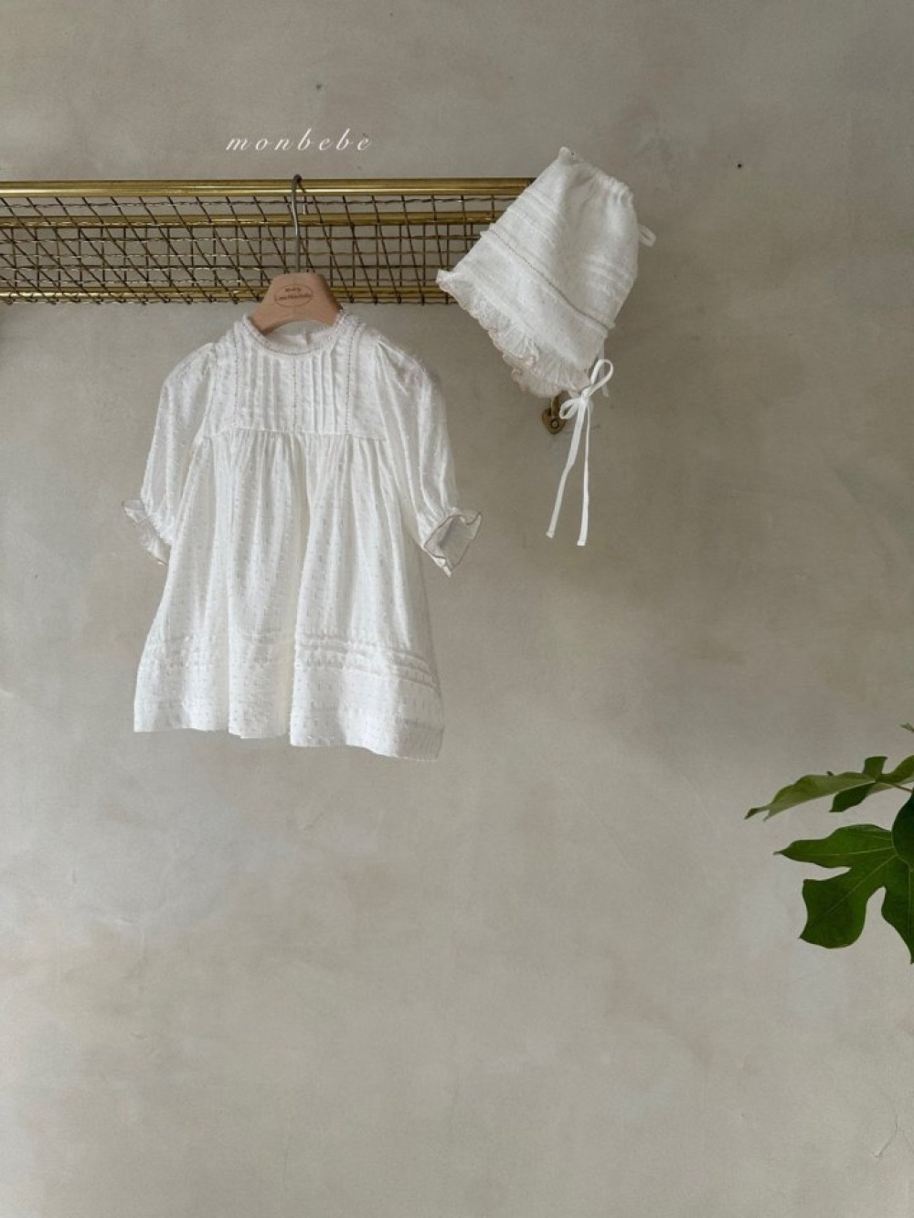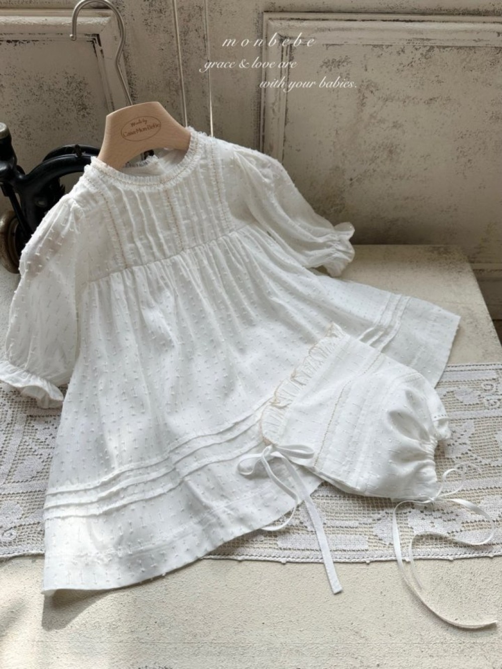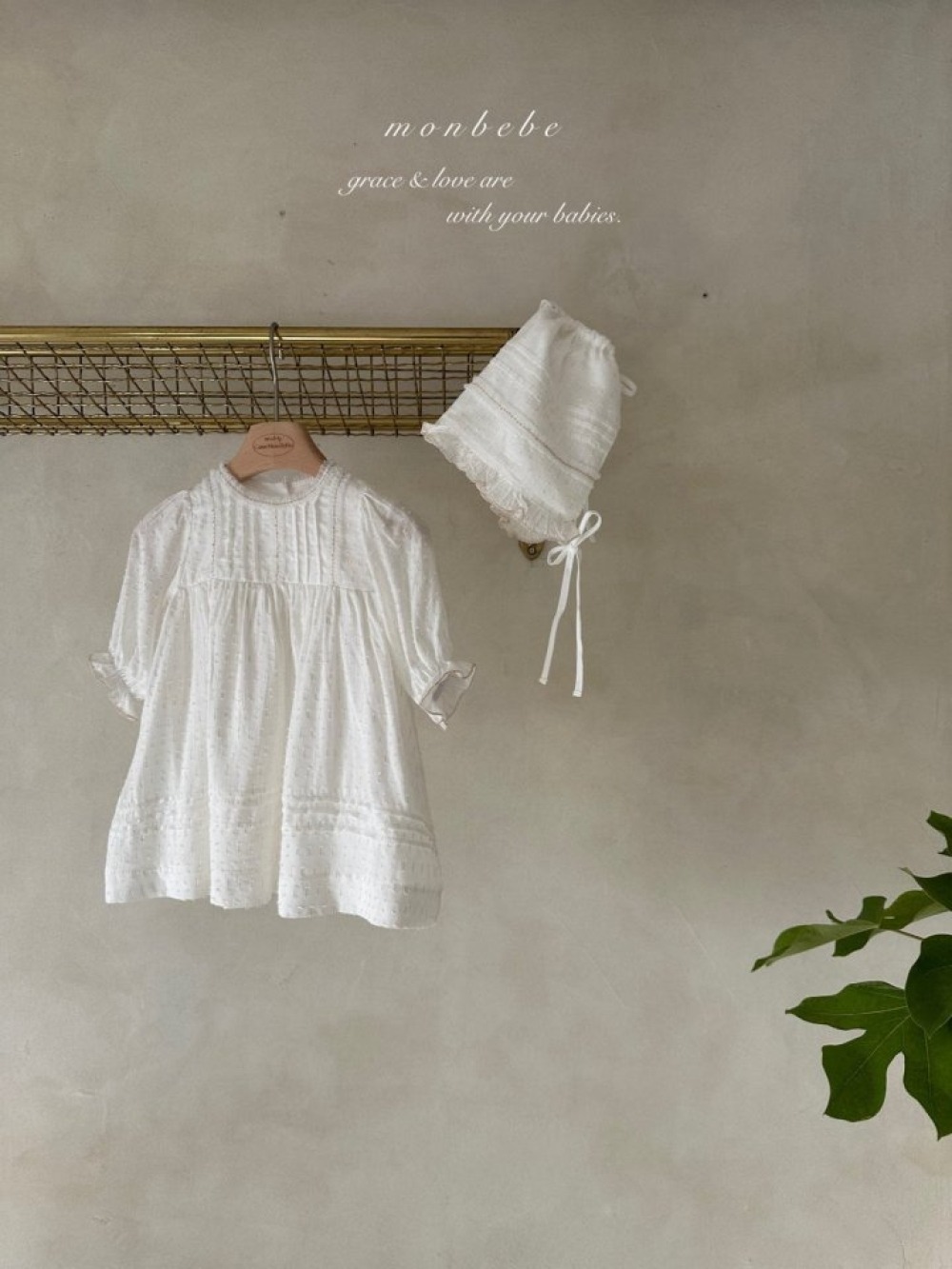 MONBEBE52|(6m-12m) 花壓紋洋裝/帽子