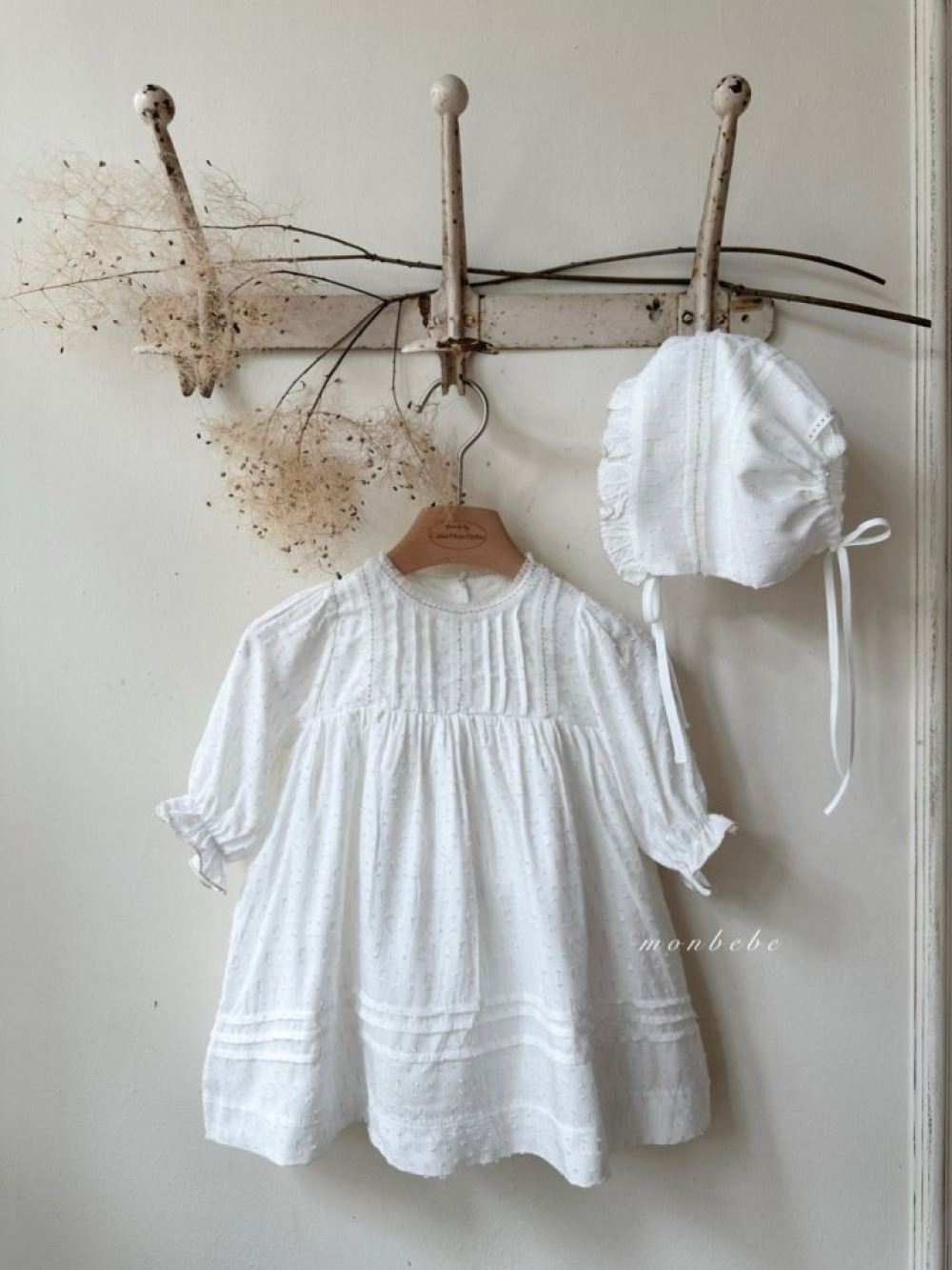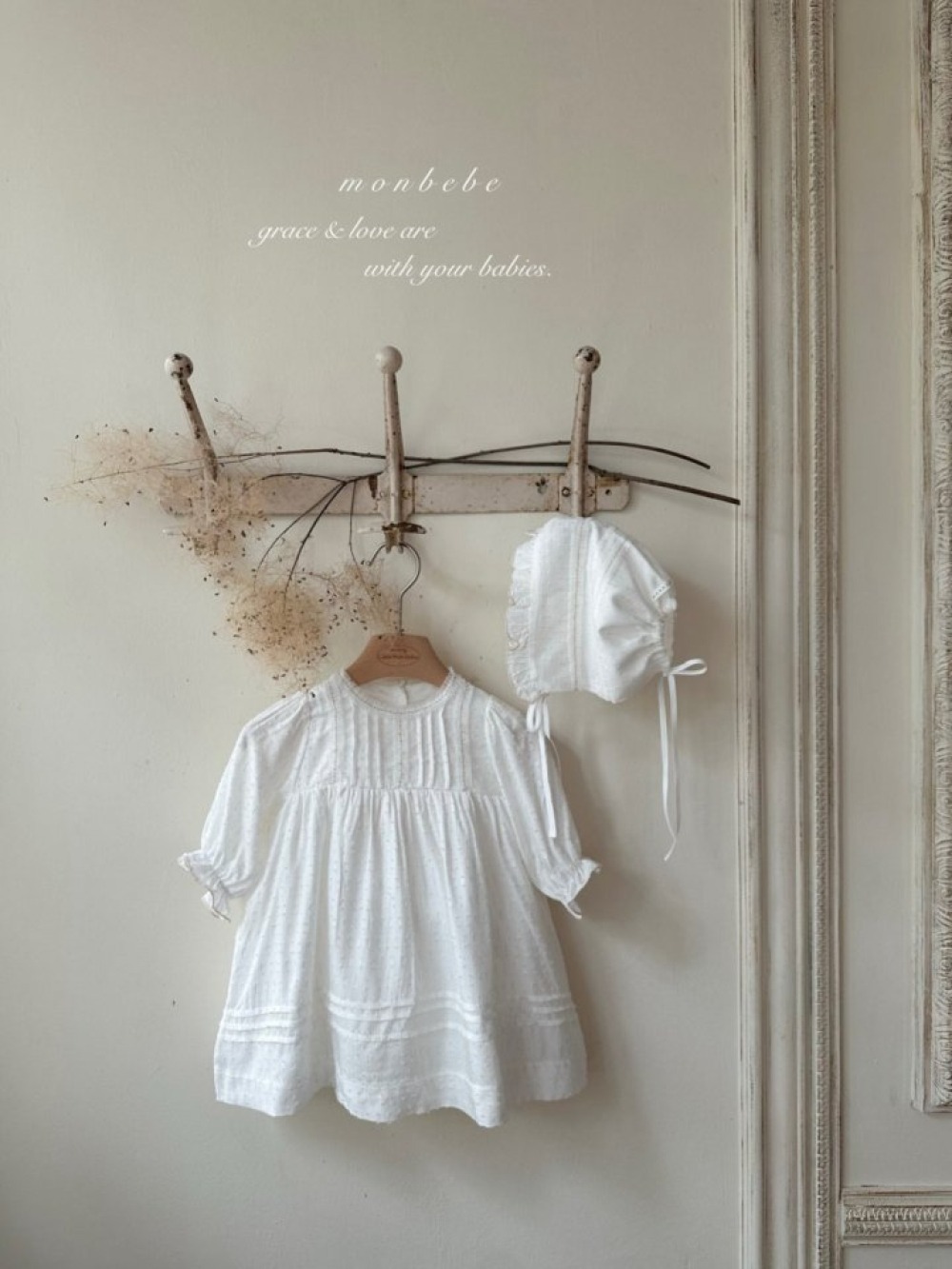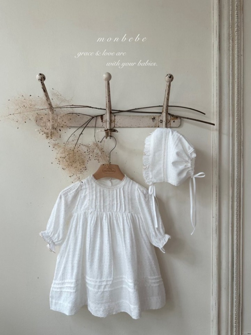 MONBEBE52|(6m-12m) 花壓紋洋裝/帽子