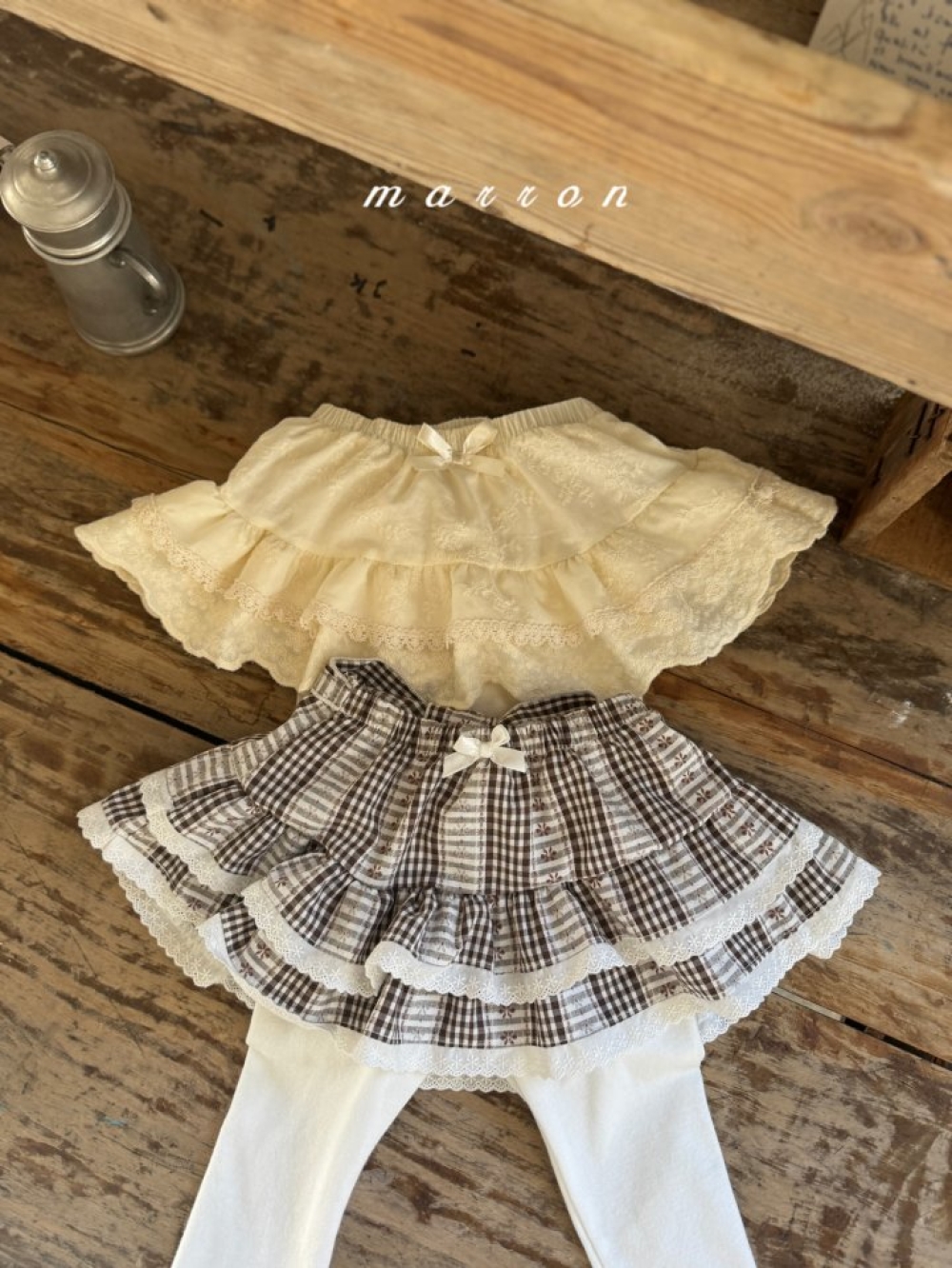 Marron16|(1y-6y) 蛋糕格紋/蕾絲內搭褲裙