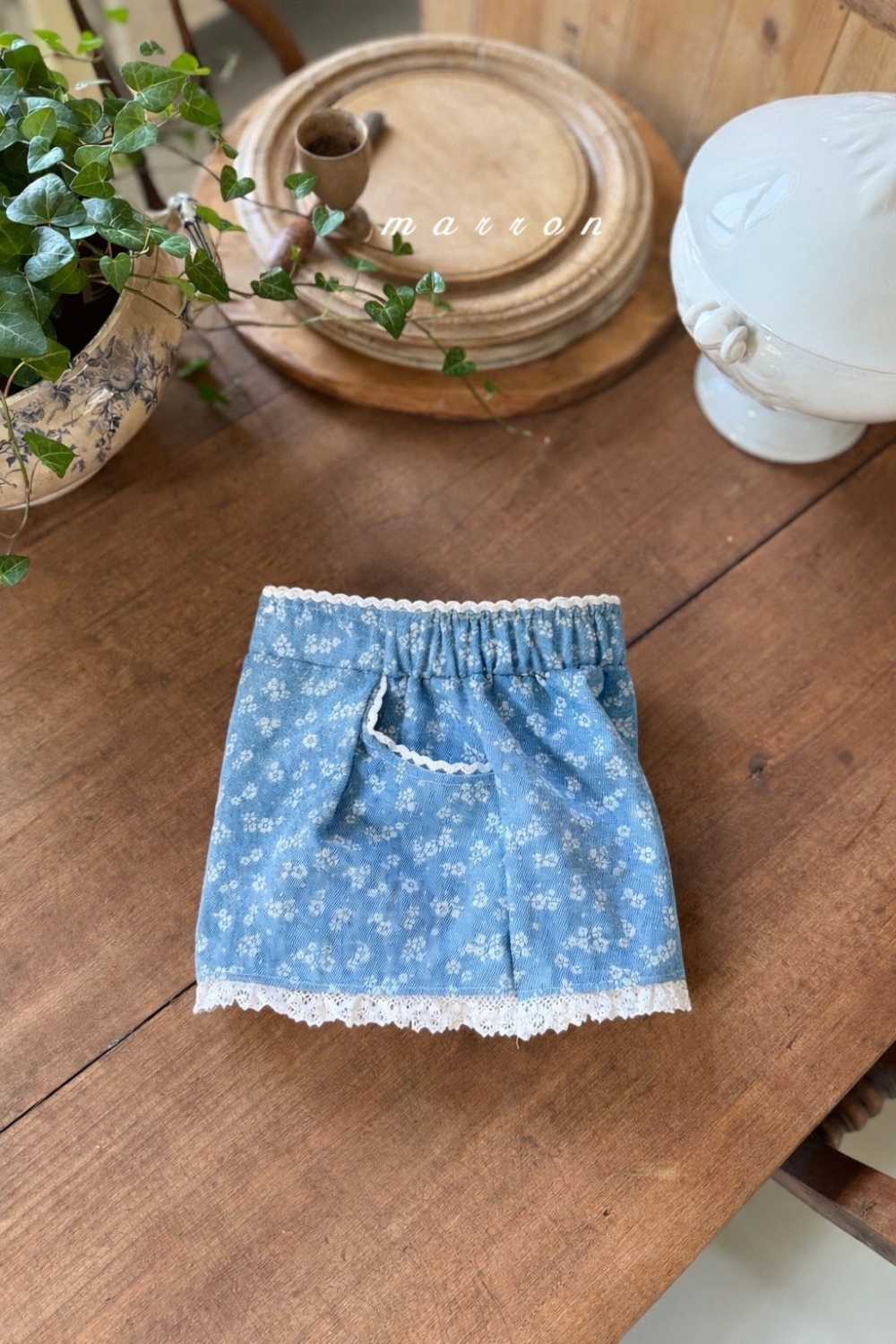 Marron17|(1y-6y) 牛仔碎花蕾絲褲