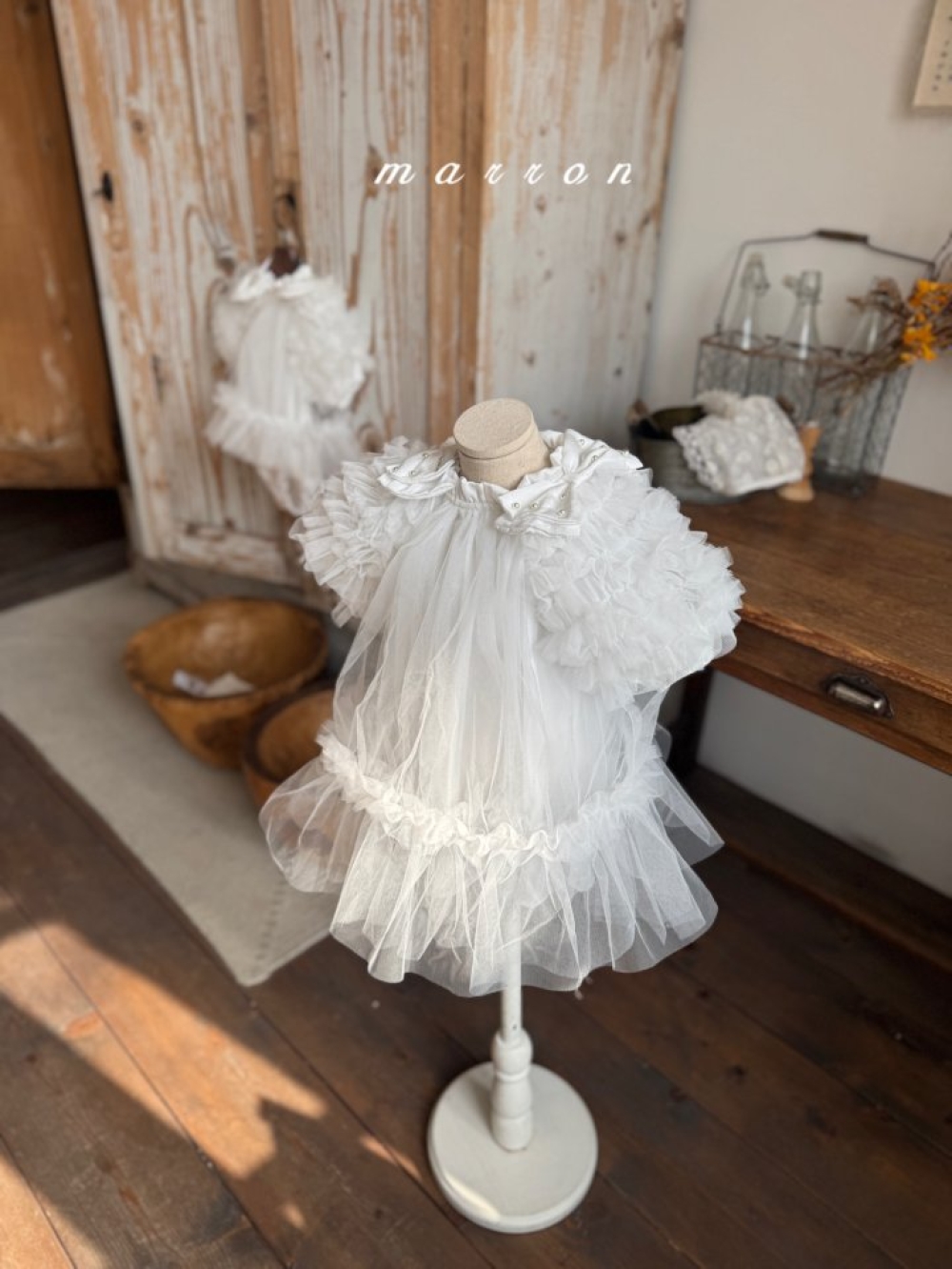 Marron23|(1y-6y) 薄紗滾邊蓬蓬袖洋裝