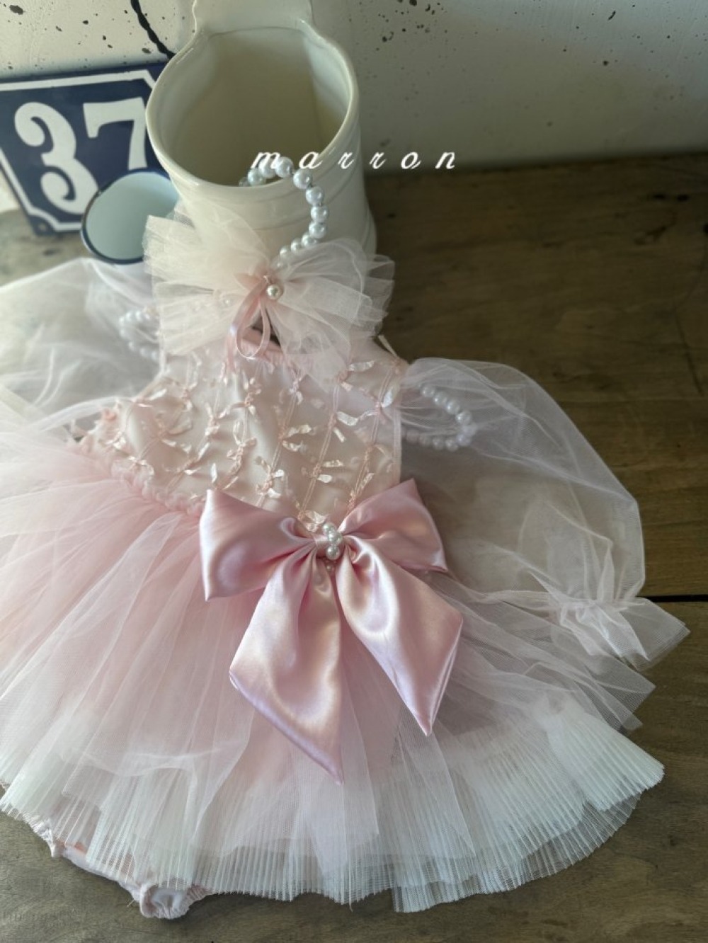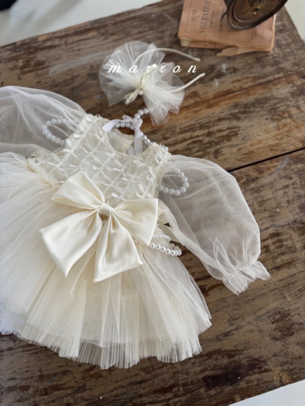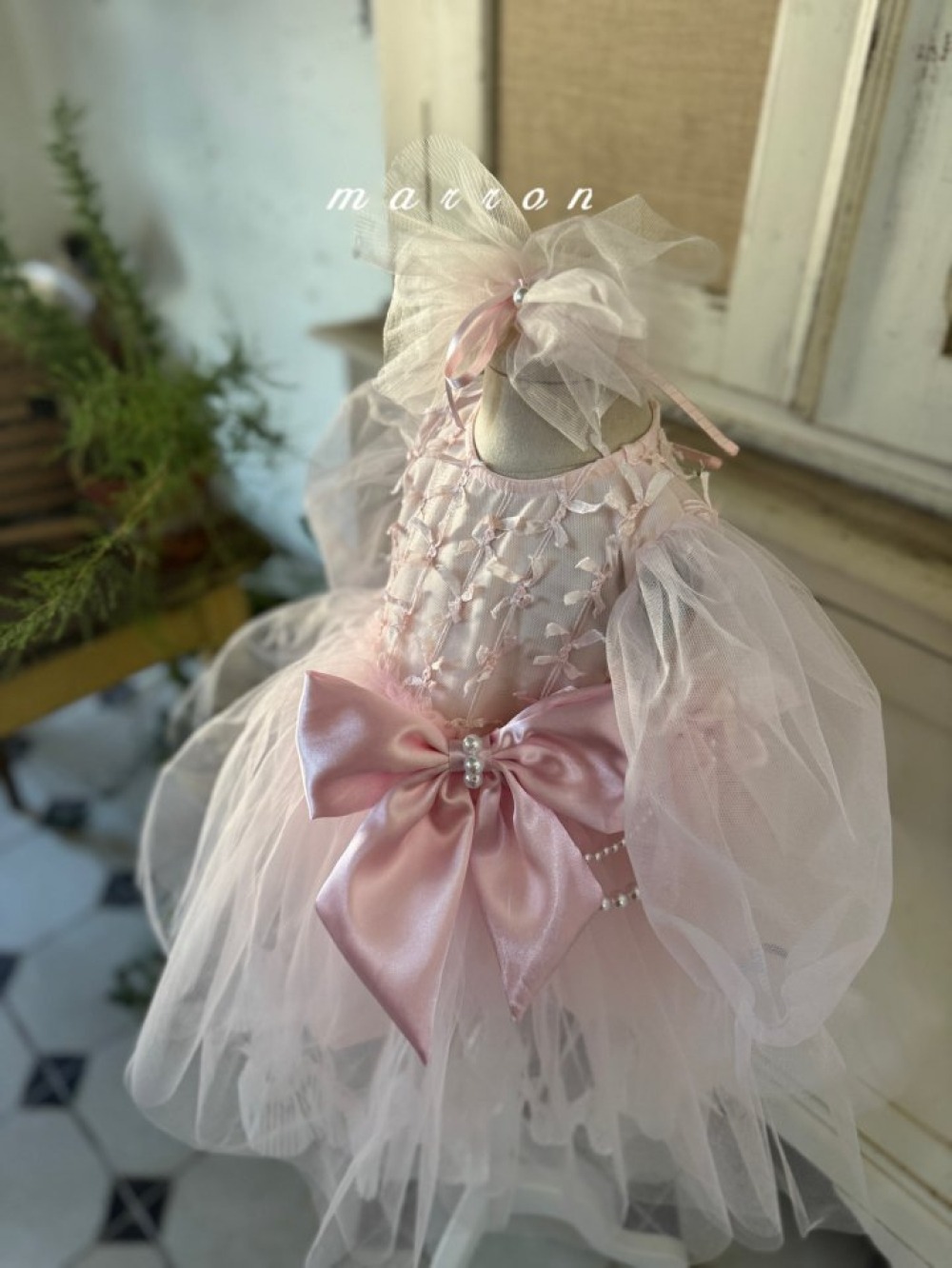 Marron56|(1y-6y) 絲帶薄紗澎澎洋裝
