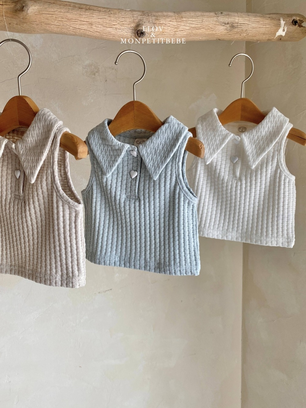 Mon petit21|(73-118cm) 有領愛心鈕扣背心