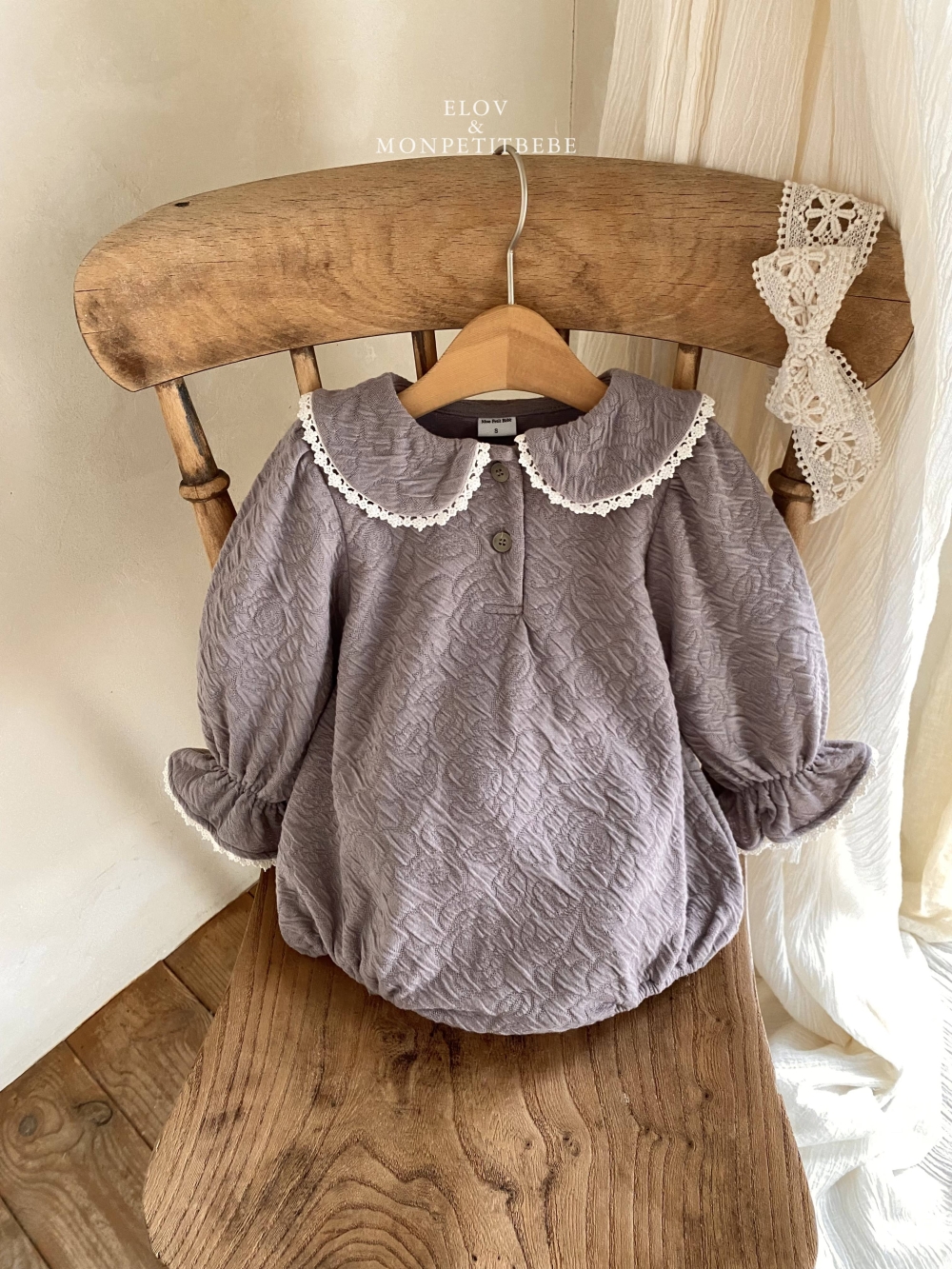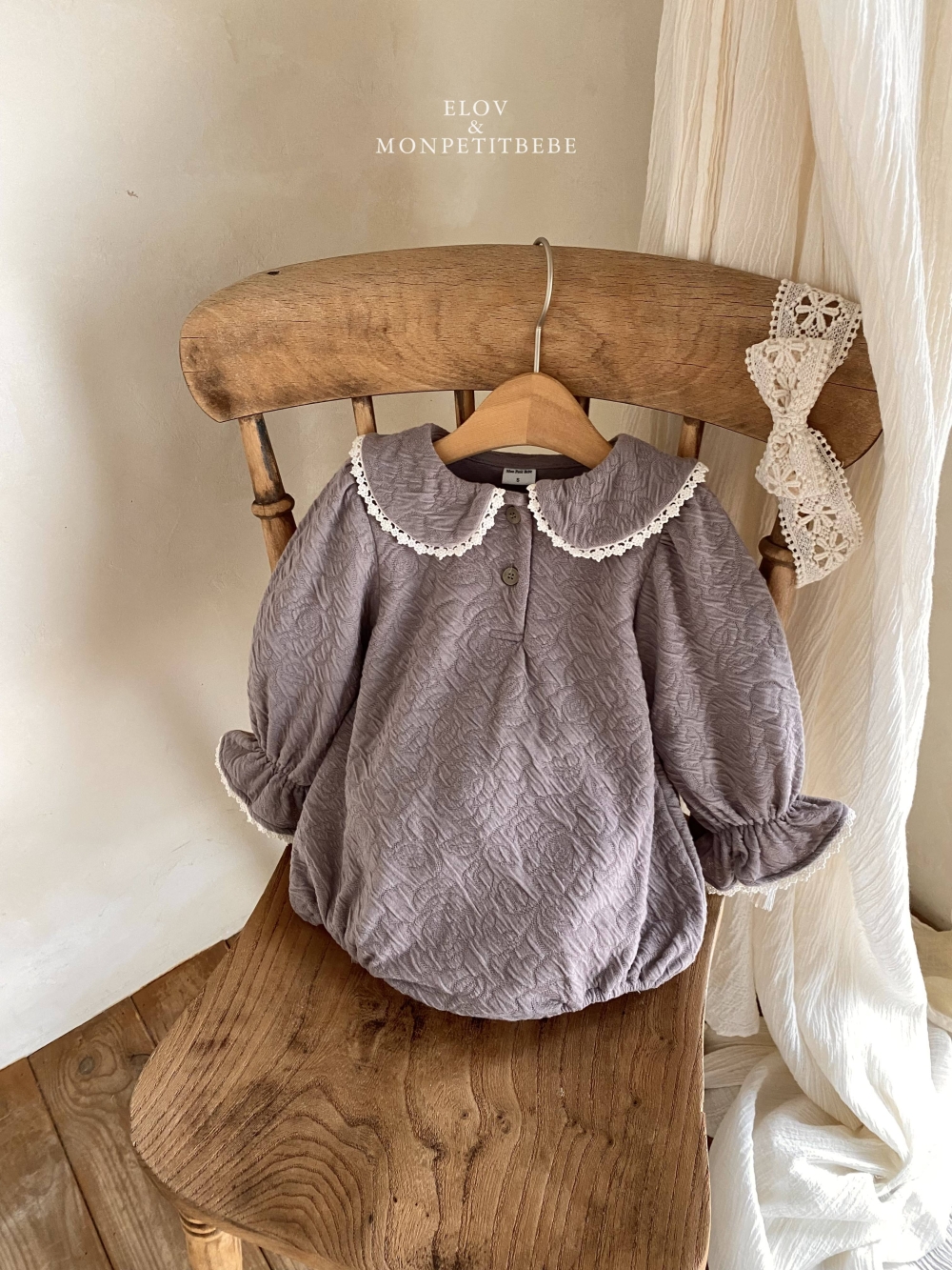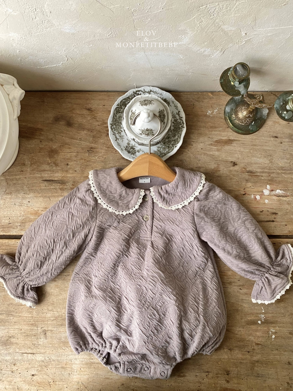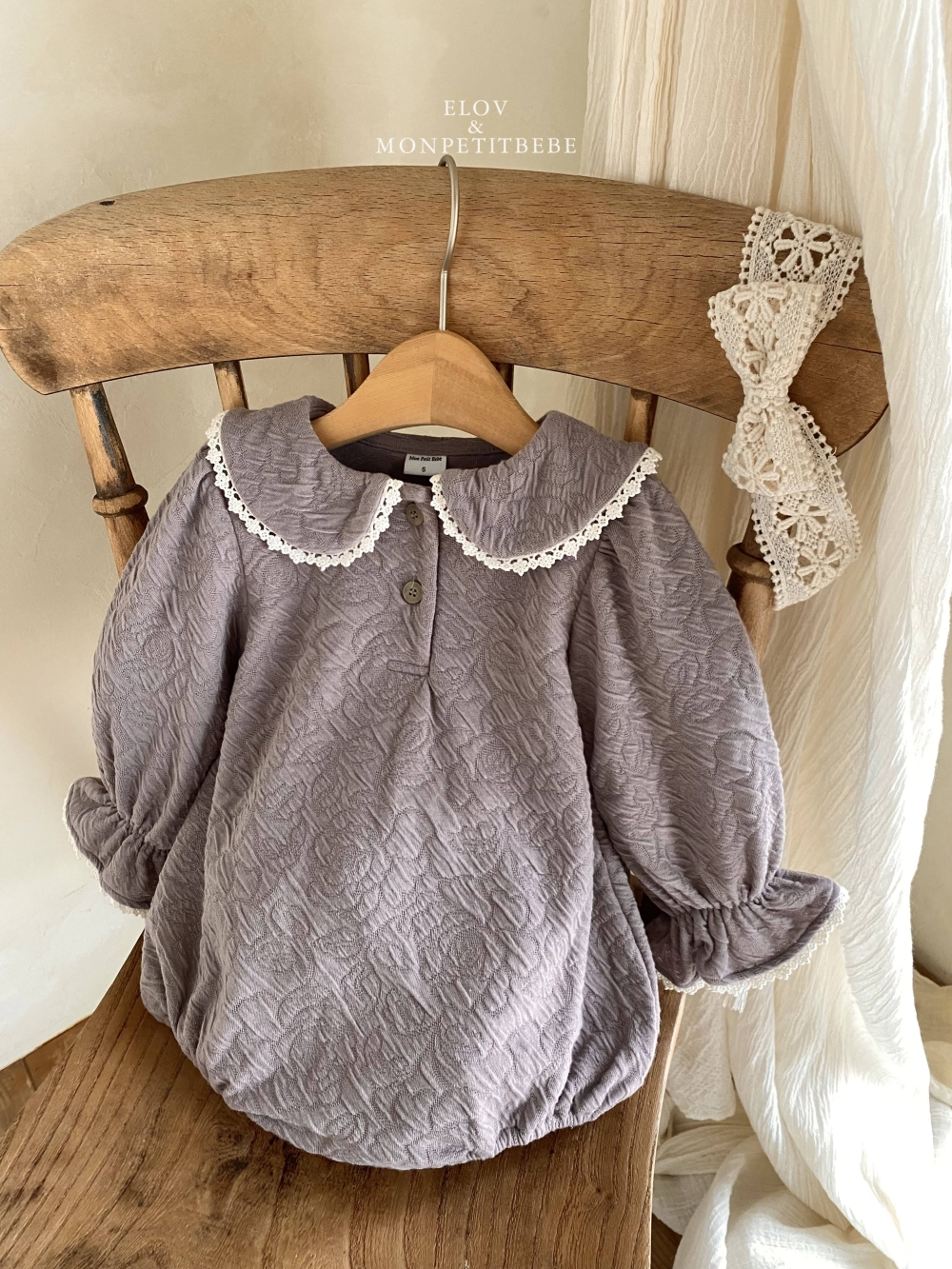 Monpetitbebe05|(6-18m) 玫瑰花壓紋蕾絲圓領邊包屁衣