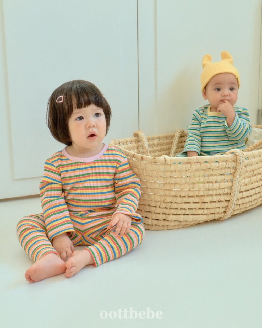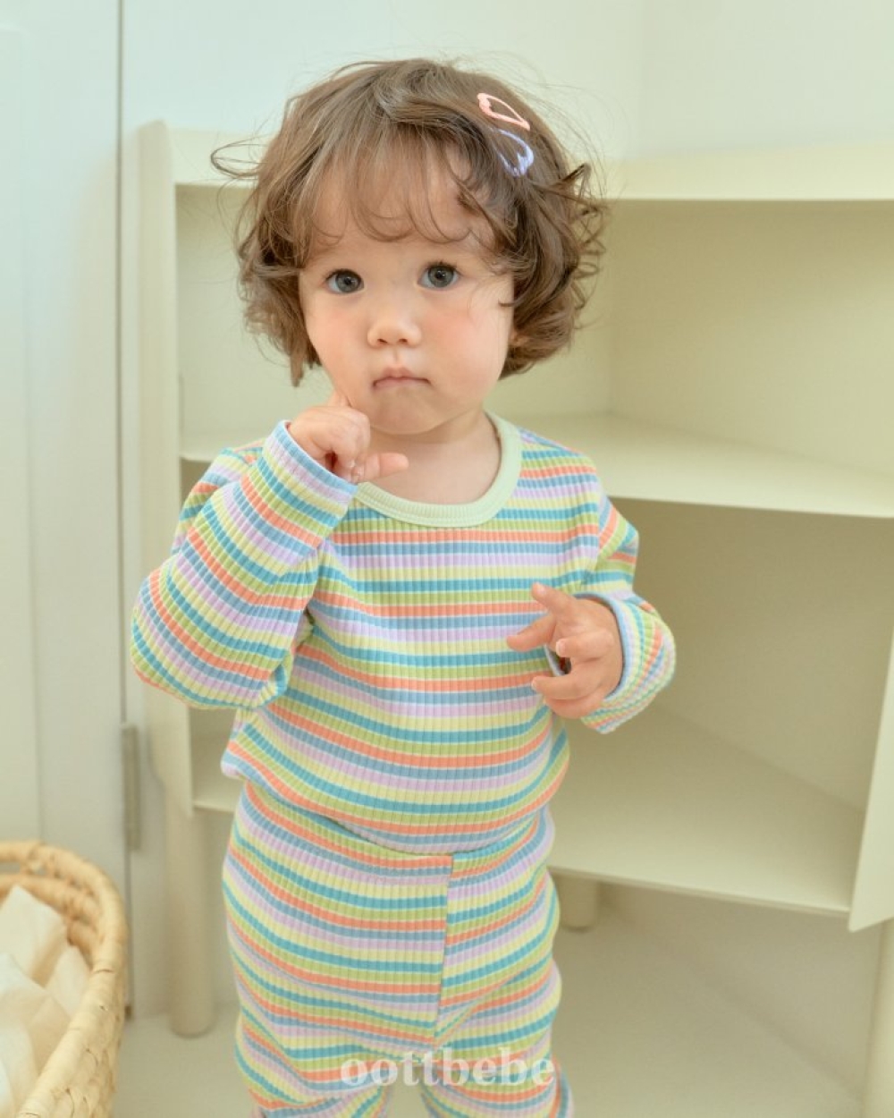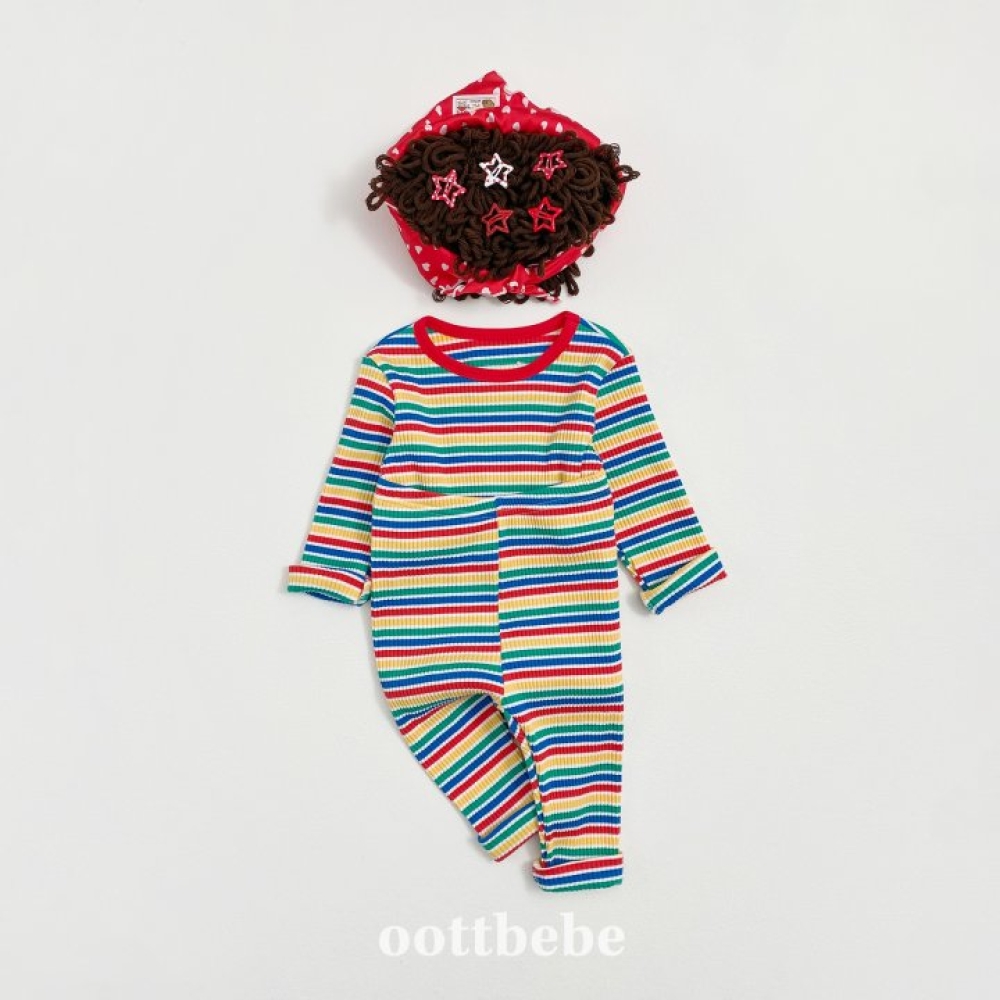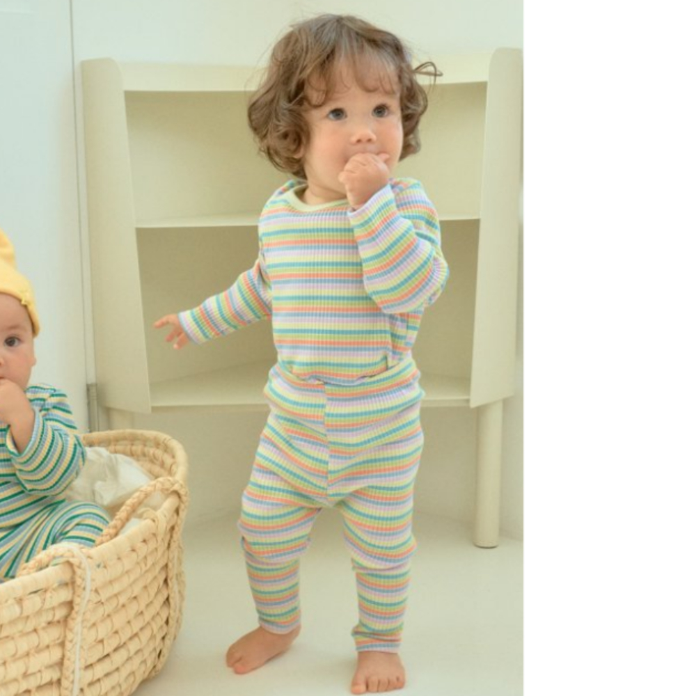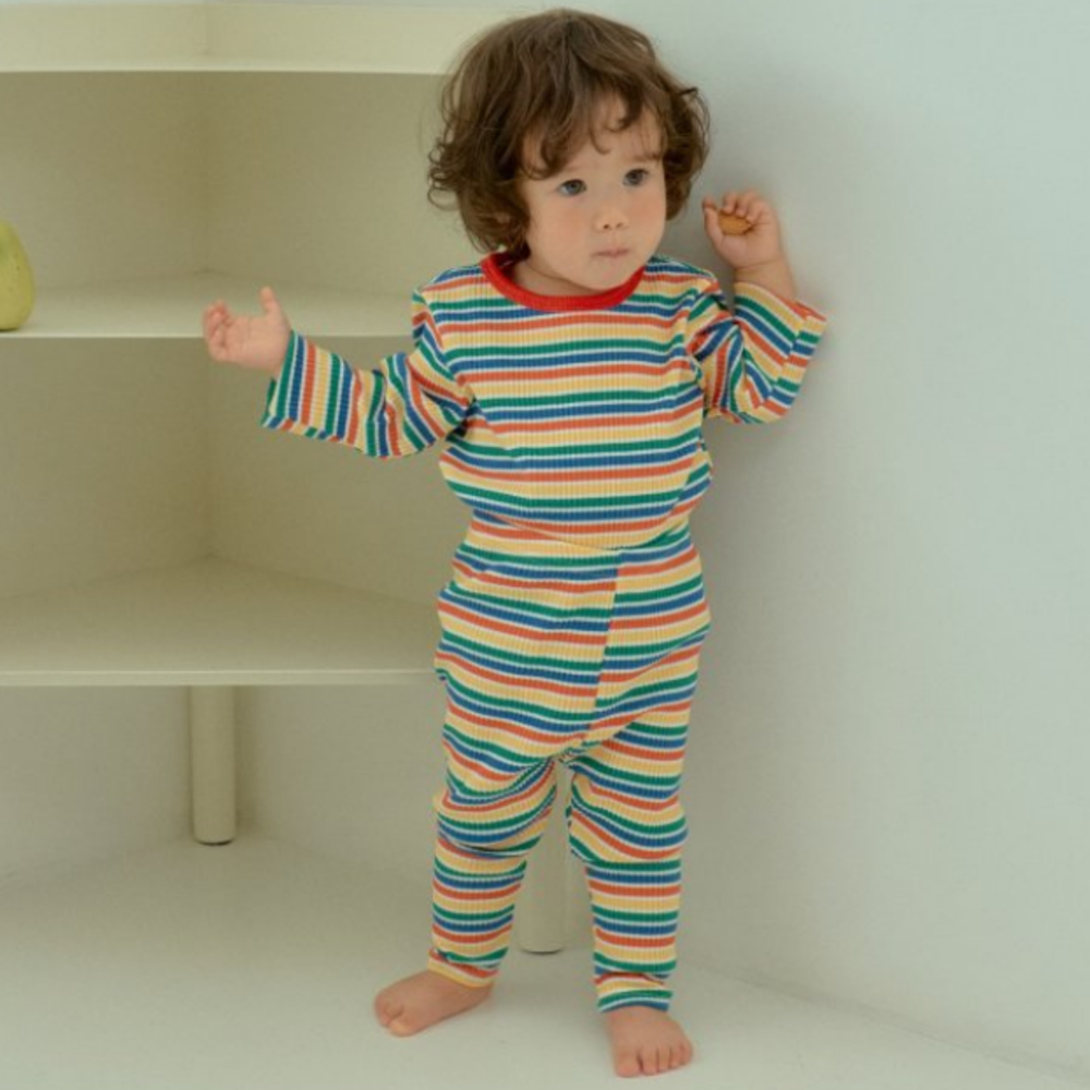 Oottbebe34|(1y-7y) 繽紛條紋色居家服套裝