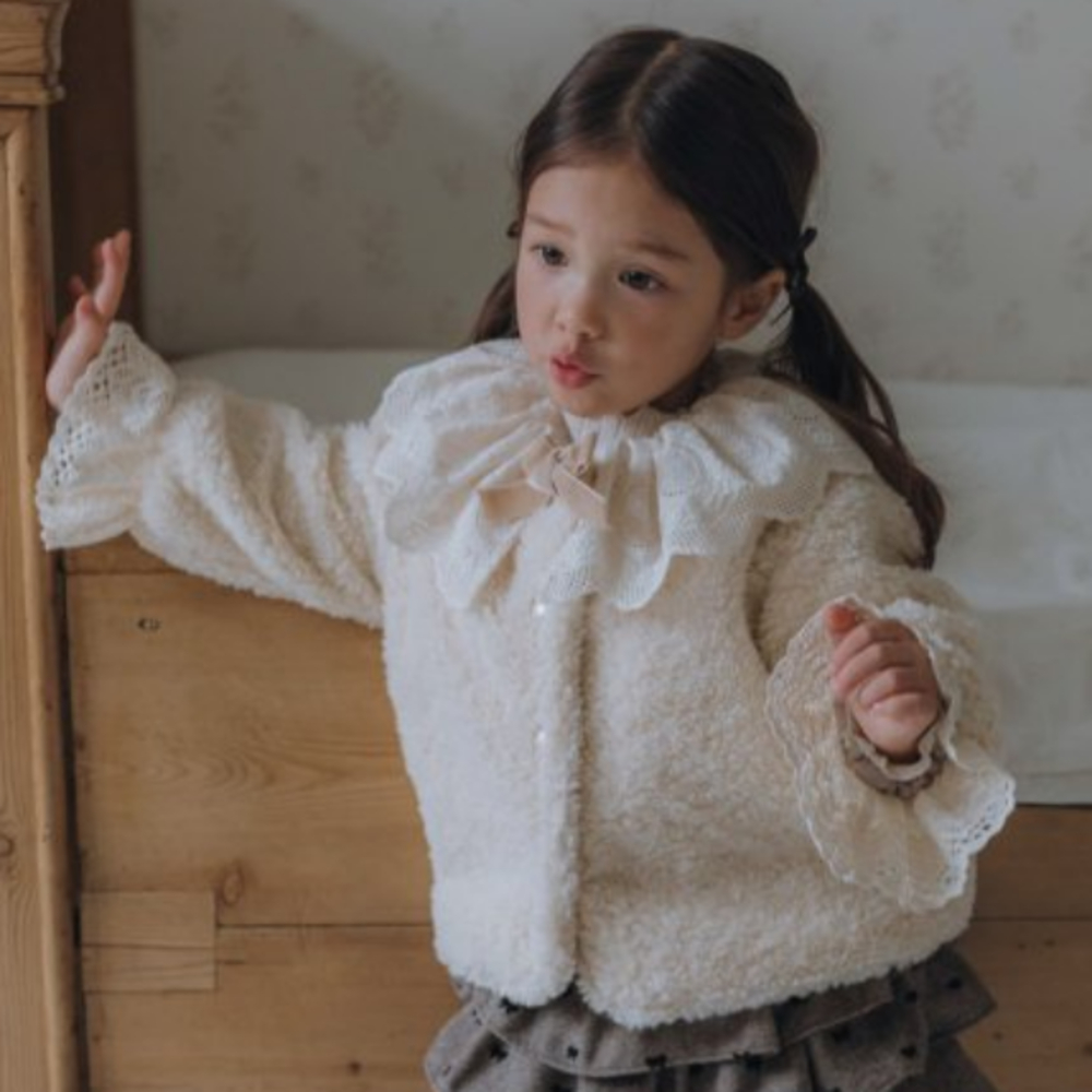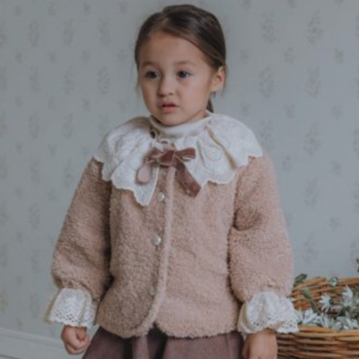 ROA04|(80cm-120cm) 2色蕾絲領袖邊絨毛外套