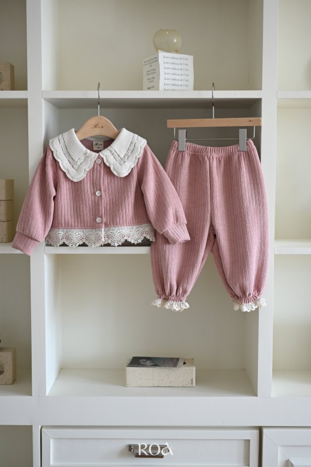 ROA11|(80cm-120cm) 2色蕾絲翻領絨毛開衫上衣