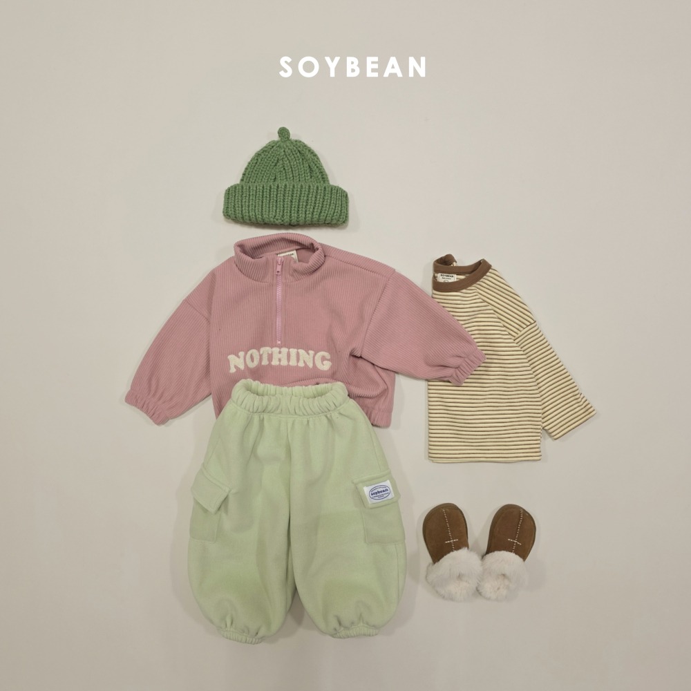 Soybean03|(75cm-118cm) 英字拉鍊半開襟內刷毛上衣
