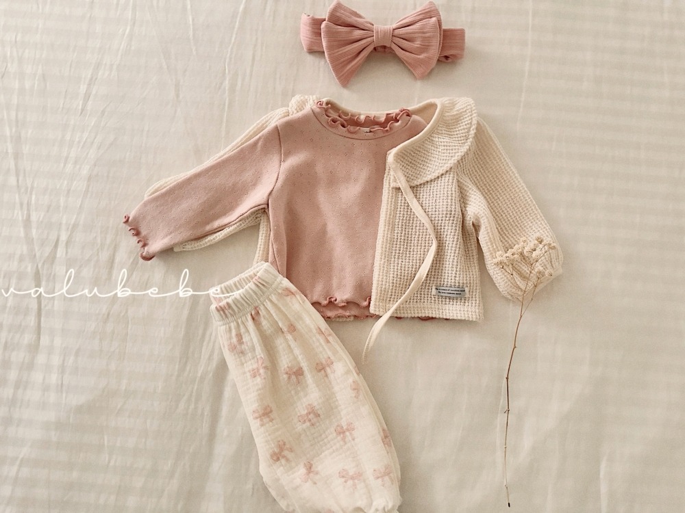 Valubebe51|(65-90) 蝴蝶結羅紋喇叭褲